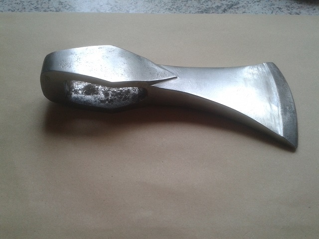 Was mir noch nicht so gefallen mag, ist die doch recht modere Form des Stiellochs. Die historischen Aexte, die ich so im Kopf hab hatten doch eher runde Stiele. Aber ohne schmieden und oder schweissen ist da nichts dran zu aendern