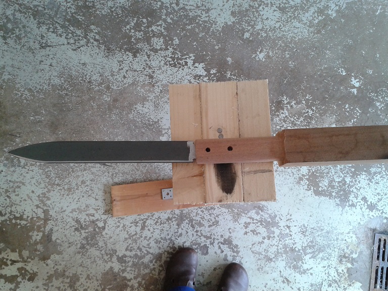 Das Sax wieder aus Messerstahl und das Tantō aus Flachstahl vom Schlosser.( Restmaterial) Härten noch nicht durchgeführt, kommt noch.