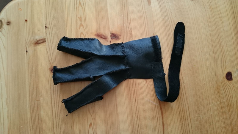 Der Handschuh ist für rechts- sowie linkshänder geeignet und wurde aus Lederresten und ohne Schnittmuster angefertigt.