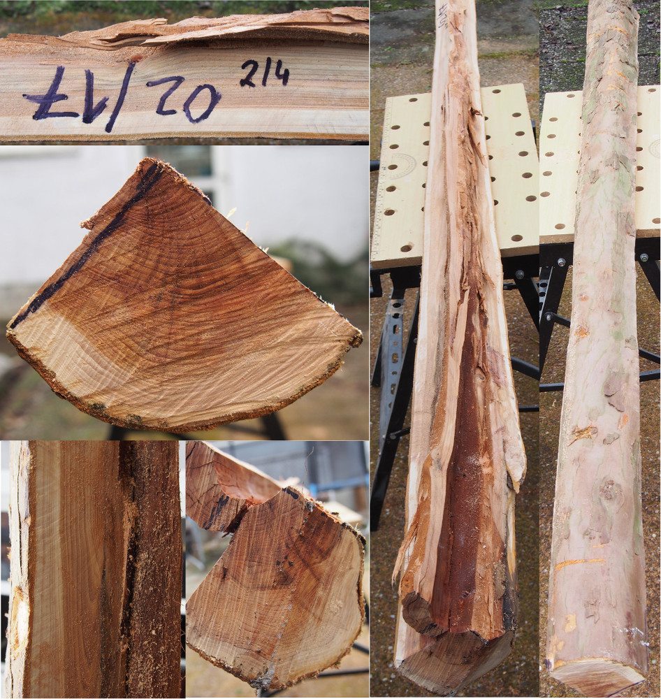 Wenn das Holz trocken ist, möchte ich klassische Langbögen bauen (ca. 50lb). Mir macht das teilweise dunkle Kernholz sorgen (siehe Nr.1).