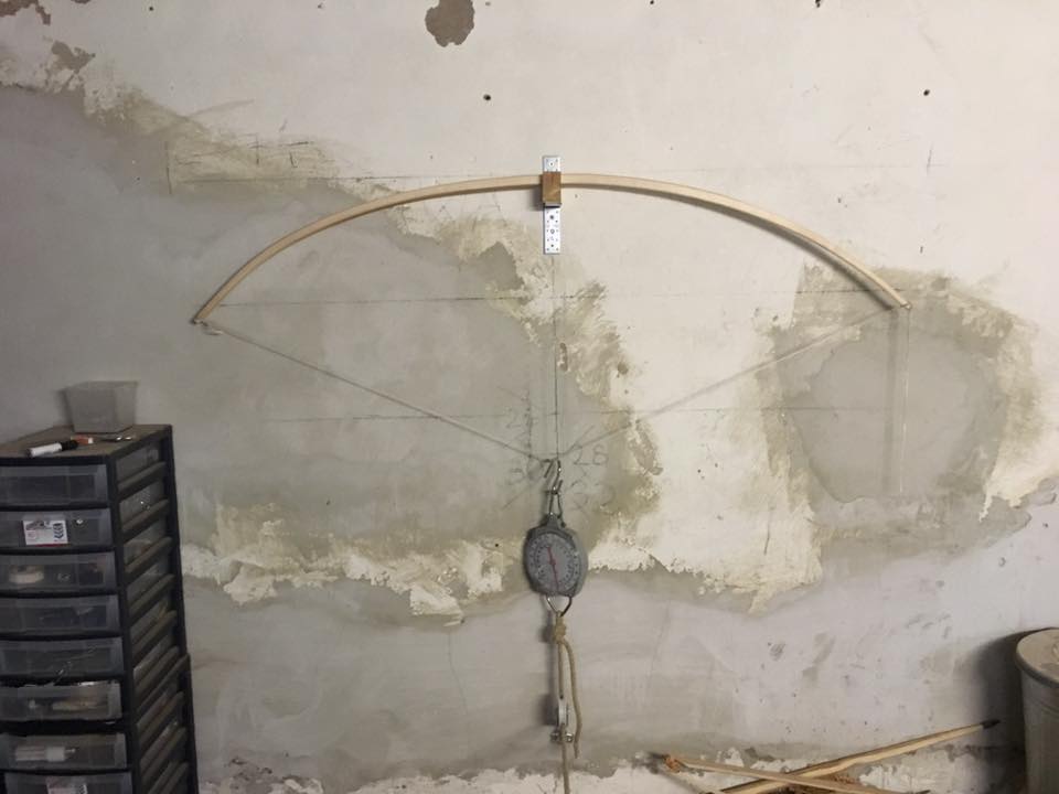 Hier der zweite Tiller, immer noch die lange Sehne, jetzt 115# @ 28", Peitsche mit ein paar Schwachstellen, rechts biegt er zu wenig: