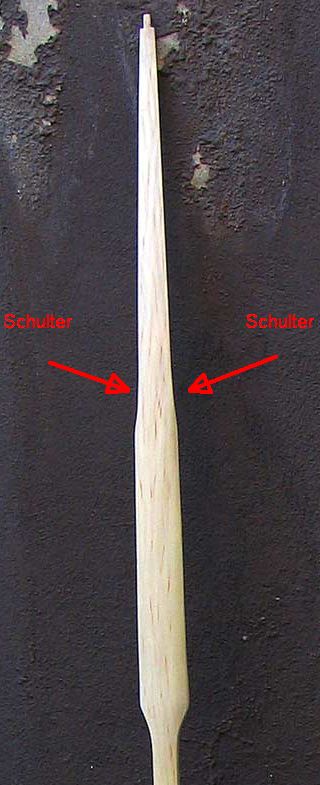 Kommen wir zu meiner Zeichnung. Du musst mit bitte noch weiter helfen zu ergründen, warum ich dort einen Holmegaard zeige. Meine Zeichenkünste sind nicht besonders gut ausgeprägt, aber was ich darstellen möchte, ist ein Bogen mit ausgeprägten Schultern (Übergänge zu den Nadeln), was aus meiner Sicht eindeutig für einen Möllegabet spricht. Hinsichtlich der Nadeln habe ich tatsächlich sich in der Breite verjüngende Nadeln gezeigt. Wenn das wirklich ein Ausschlusskriterium für einen Möllegabet ist, dann hätte ich tatsächlich einen Holmegaard gezeichnet. Daran glaube ich aber noch nicht; vielleicht kannst Du mir die Forderung nach gleichbleibend breiten Nadeln beim Möllegabet noch einmal explizit belegen? Und bei der Gelegenheit: Junkmanns schreibt, dass beim Möllegabet die Nadeln nicht biegen. Das legt zwar nahe, dass sich die Nadeldicke bei Möllegabet-Bogen nicht verjüngt. Was ist aber eigentlich, wenn sich die Nadeln in der Dicke zu den Tips hin zwar (nicht-signifikant) verjüngen, und dennoch nicht biegen? Dann ist es nach Junkmanns Vorschlag ein Möllegabet: "So I would propose for everyone to use the term Möllegabet bow instead of Holmegard as far as stiff outer limbs ar present."
