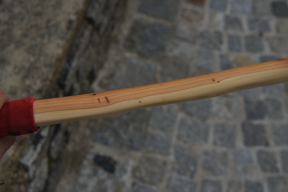 Schaut doch gut aus, gefällt mir. Einzig dem Griffleder könntest du noch ein Lederband spendieren, mit dem Schnürsenkel sieht das nicht so schön aus, finde ich.