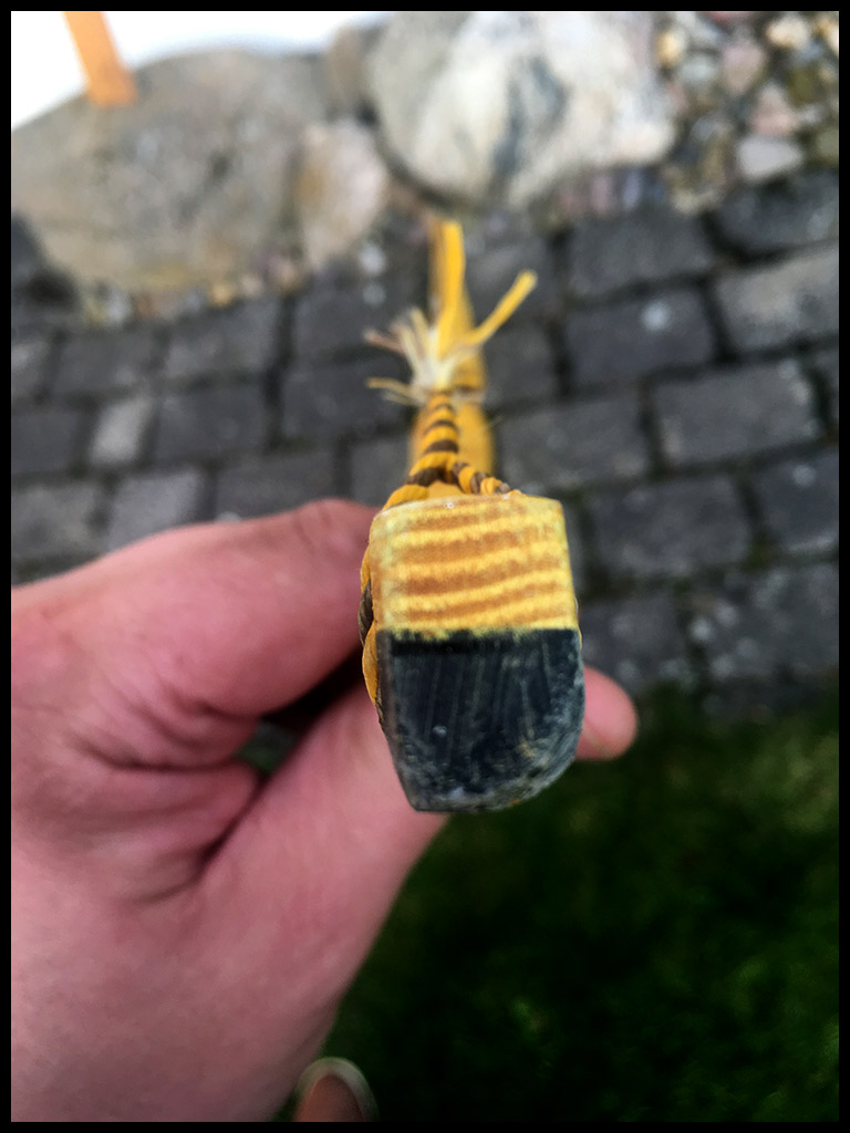 Ebenso hat der Stave im oberen Bereich zum Tip hin einen größeren querliegenden Ast welchen ich versucht habe