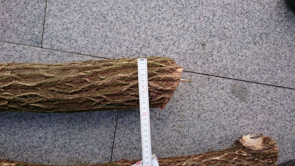 Heute Nachmittag habe ich dann erst mal die Rinde abgemacht.