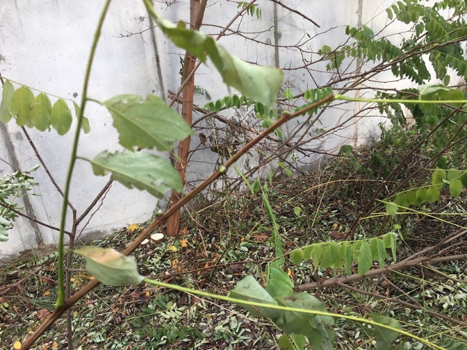 Zuerst habe ich mal die BWK-Robinie weiter in Form gebracht. Die hat leider nen Ar... voll Äste... :-\