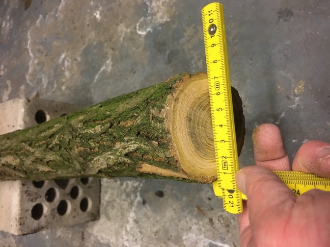 Leider ist das Holz, wie befürchtet, noch extrem nass. Hinter der Mauer, an der die Robinie stand, ist ein beheizter Keller. Vielleicht ist sie deswegen noch so frisch? Und weil auch noch keinerlei Kernholz vorhanden ist und ein Haufen Äste drin sind, habe ich mich trotz Zeitdruck doch noch entschieden, mir Alternativen zu suchen.