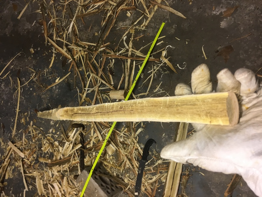 Und gleich noch runtergearbeitet. Spalten habe ich mich bei dem dünnen Ding nicht getraut, daher mit Beil und Ziehmesser bearbeitet:
