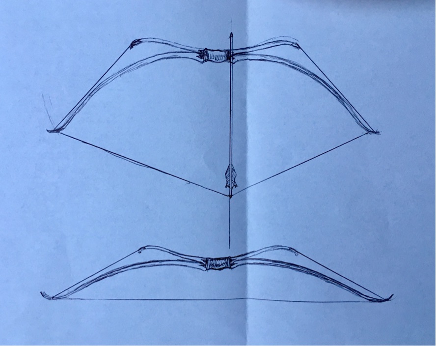 Hier mal eine Zeichnung, in welche Richtung der Bogen gehen soll. Die leichte „burgundoide“ Möwenform des Hauptbogens sollte so eigentlich durch den natürlichen reflexen Knick im Stave zu verwirklichen sein.