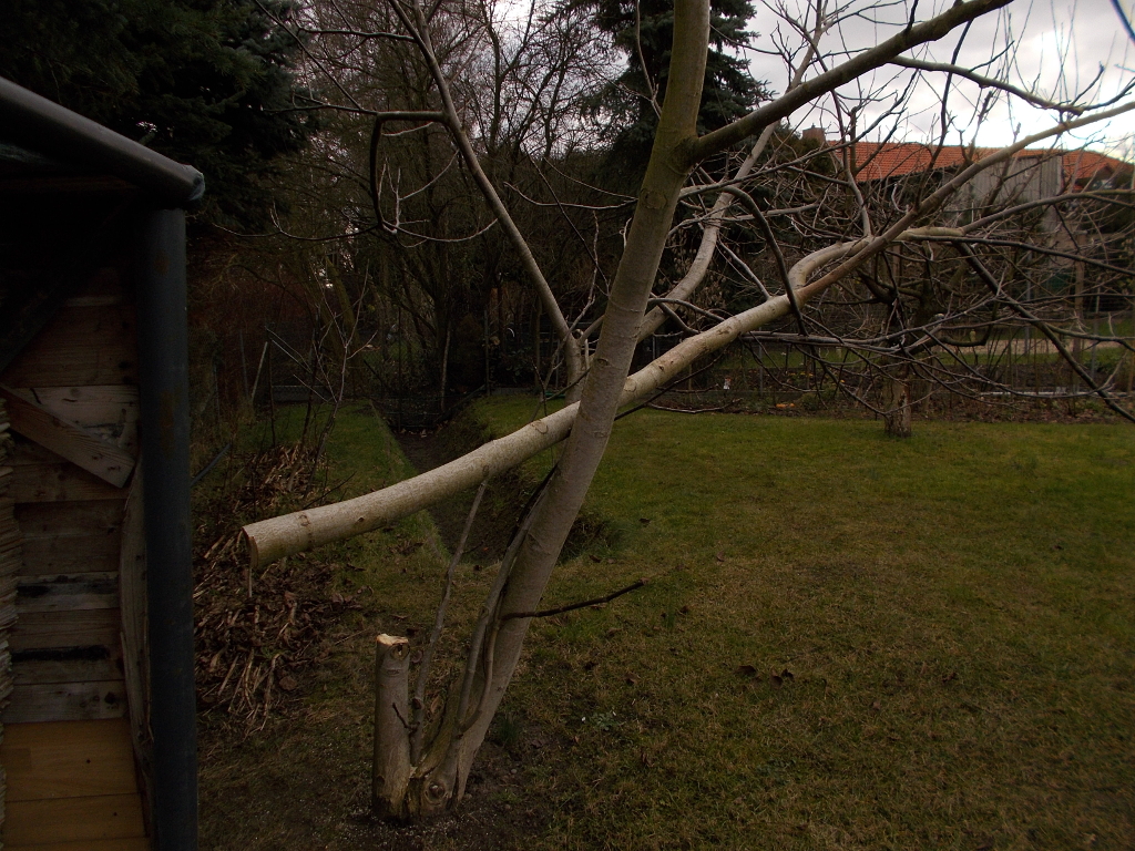 Also, mit der Säge über der Schulter, ab in den Garten.
