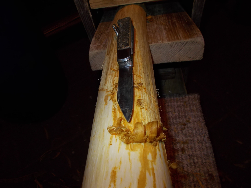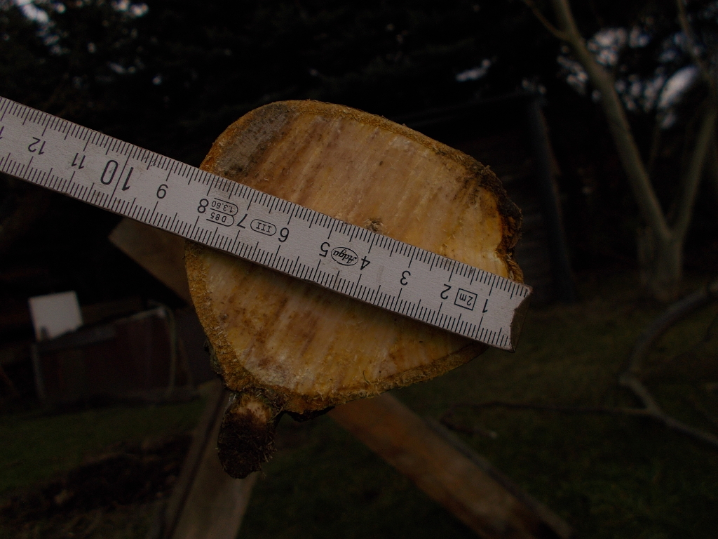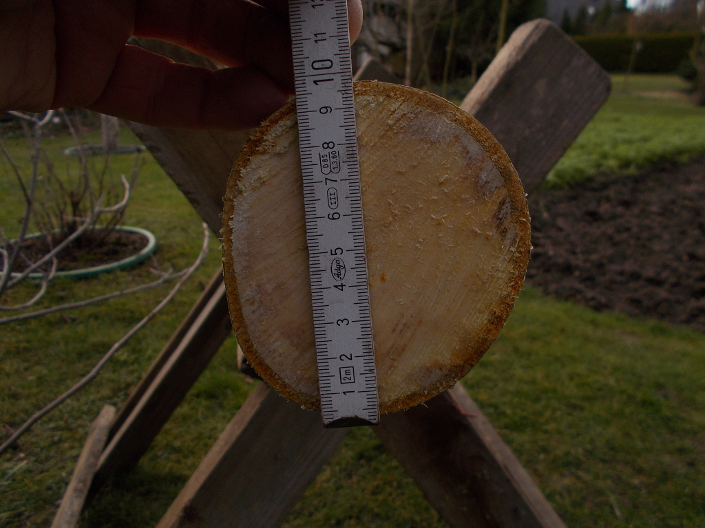 Der Stave ist jetzt 1,87 cm lang und 6-7 cm breit, ziemlich dicker Splitter, hoffe, der wird rechtzeitig trocken.