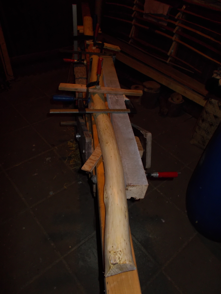Heute die eine Hälfte mal etwas dünner gemacht, ist jetzt noch so 4-5 cm dick, wegen der Rückenwölbung.