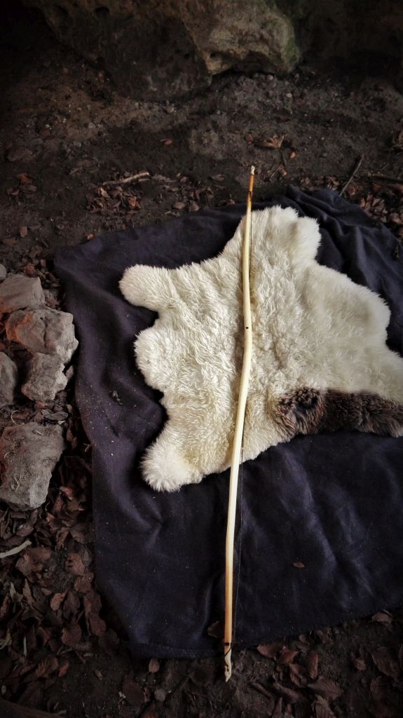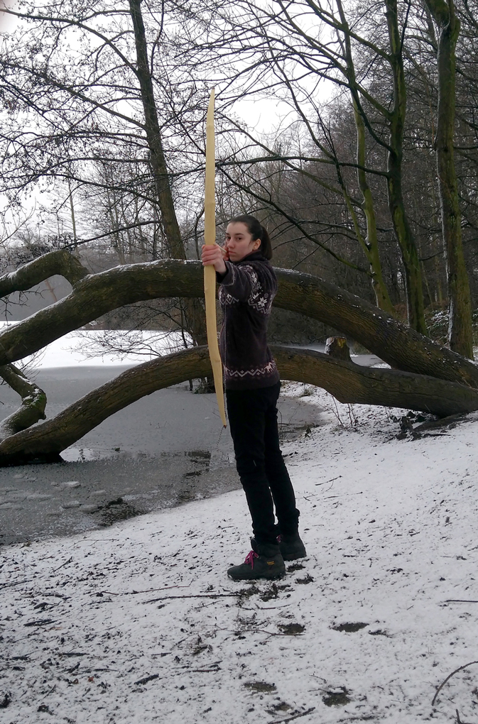 Ich wollte einen zweiten Bogen bauen, im Falle das es mit dem ersten Bogen nichts wird. Dazu habe ich einen Holler entdeckt, dessen Stamm vielversprechend aussah. Dieser Bogen ist aber aus dem Ast des Baumes. Er war krumm und es gab keine Alternative den Bogen anderst in den Ast rein zu legen.