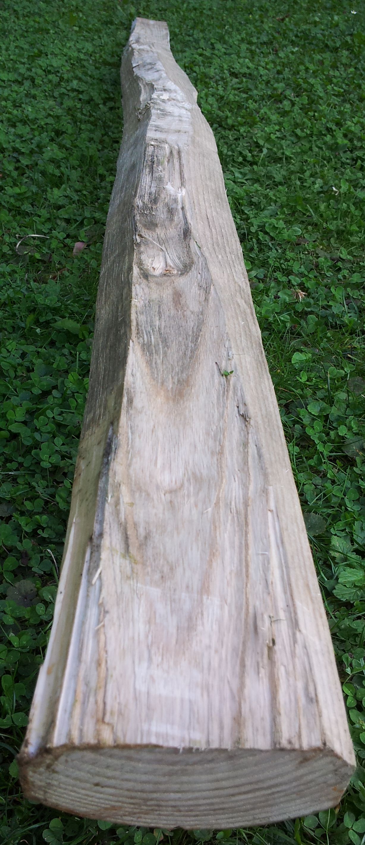 Unsicherheit 2: Die leichte Biegung - besser so lassen wegen des Faserverlaufs oder das Holz "diagonal" so abtragen, dass der Bogen am Schluss kerzengerade wird? In sich verdreht ist das Holz ganz minimal.