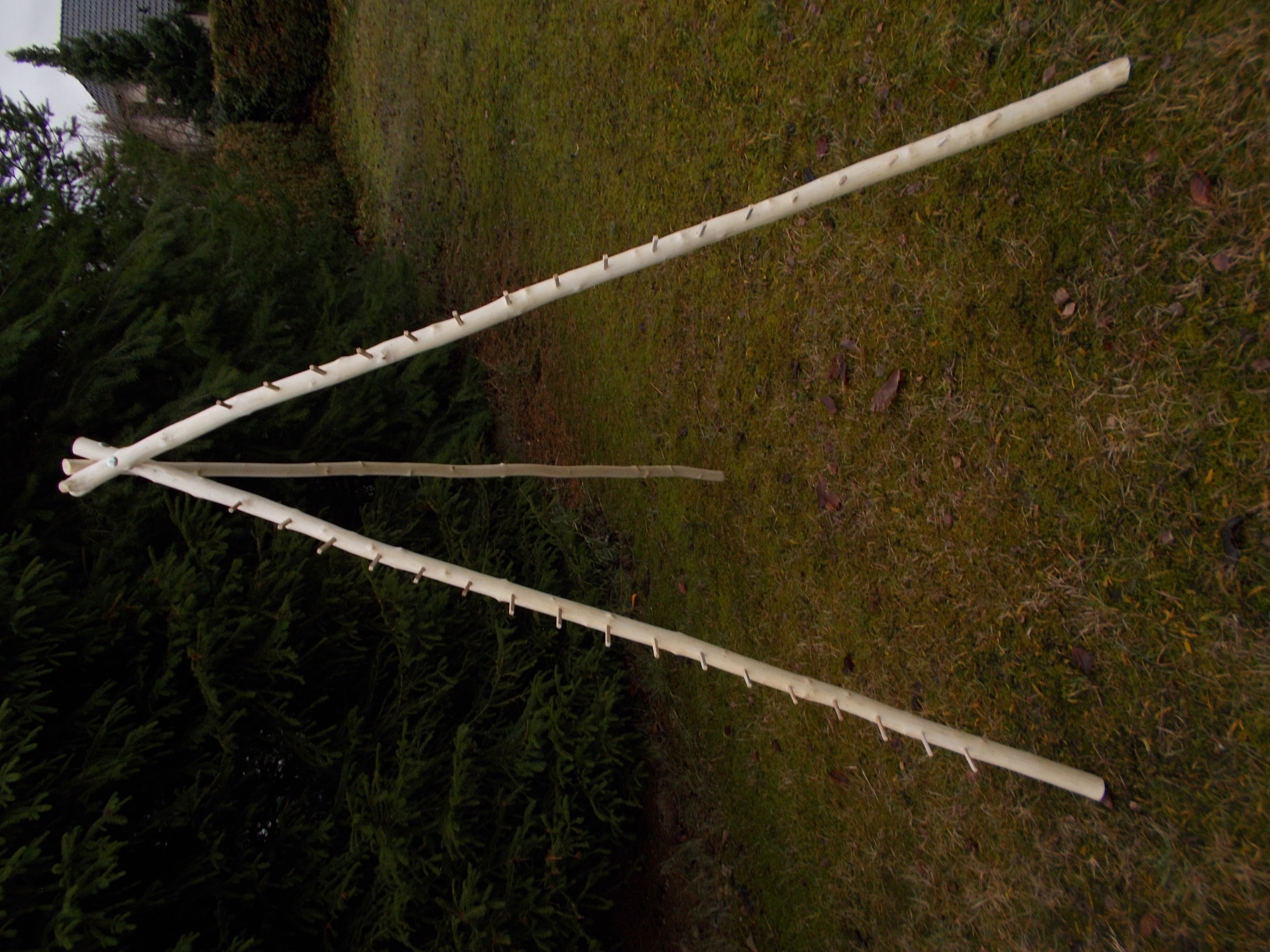 habe auch so ein Dreibein, allerdings um es authentischer aussehen zu lassen ( für Wikinger/Slawenveranstaltungen ) habe ich mir aus der Forst so 2 Meter Stangen geholt.