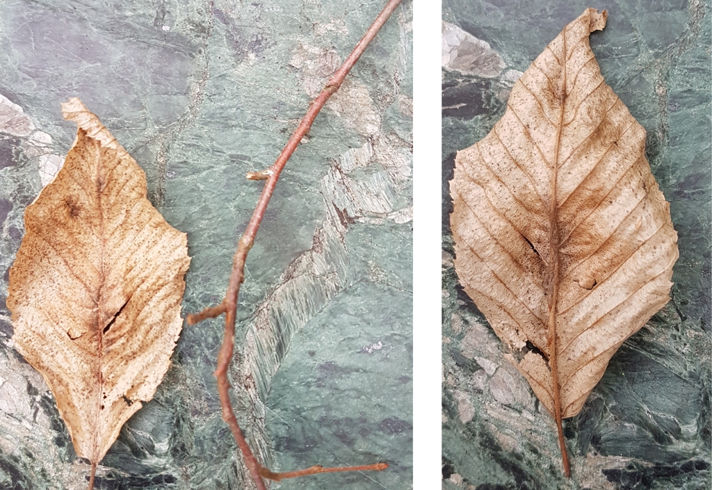 Hainbuchenblatt vorder- und Rückseite und Zweig