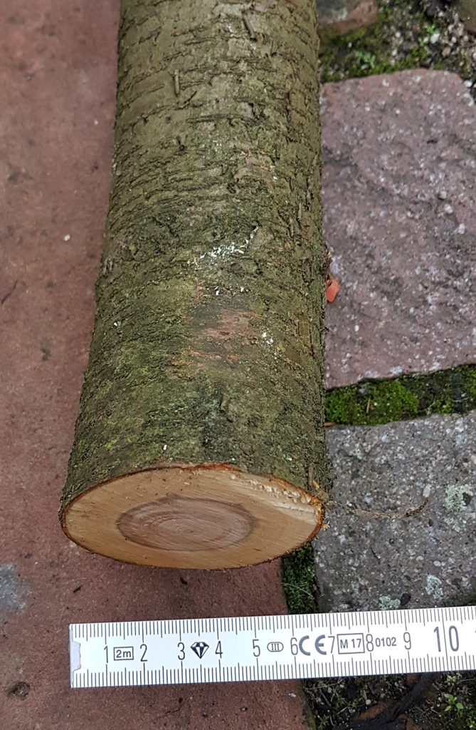 Naja, 7 cm mit Rinde auf der dicken Seite :D - da hab ich dann nur noch 6 cm und weniger und dann ist der Markkanal noch abzuziehen, der mind. 1 cm dick ist und wenn ich den Gammel noch weg schneide - rechne selbst :D Da bleibt nicht mehr viel übrig. Aber das Hölzche steht im Freien und ist noch nicht in der Biotonne.