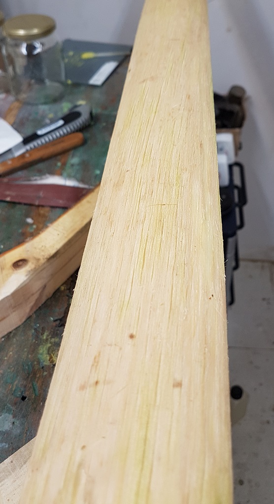 Beim Hasel war es erwartungsgemäß kein Problem, den hab ich jetzt aber auf einen Balken gezwungen, damit sich nix verzieht.