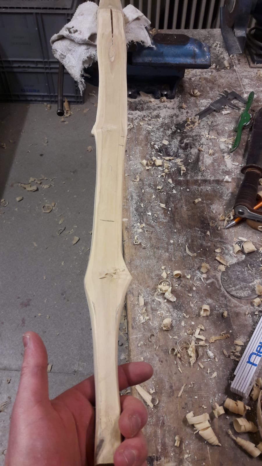Oberen und unteren Wurfarm noch einmal genauer runtergeschafft und grob (in sehr kurzem Auzug) getillert. Holz ist ja noch bissle feucht