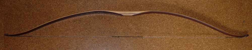 Dann die Mittellage aus Bambuslaminat zurechtschneiden und auch auf saubere Biegung tillern. Und dann - rechnen. Nach der Formel das das Zuggewicht in der 3. Potenz zur Dicke des Bogens geht kannst du das endgültige Zuggewicht des Pakets abschätzen und über die Dicke der Mittellage anpassen (evtl noch ne 2. Lage dazu oder abschleifen). Dann alle Klebeflächen konkav ausschleifen (~2/10mm) und gut aufrauhen. Mit Epoxy unter Druck verleimen (meine Wahl: Schnurwicklung und Keile) und dabei in einen sauberen Reflex biegen und so aushärten lassen.