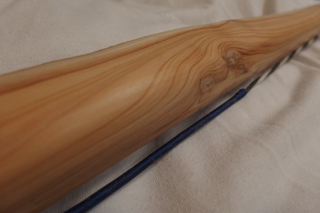 Der Bogen war aber noch heil, trotz quasi Leerschuß, vielleicht ging einige Energie zum Glück woanders hin. Der Tillerbaum ist hin, der Haken aus Holz und die Schnur ist gerissen. Ich hatte die ganze Zeit schon Zweifel, wo die Belastungsgrenze lag. Jetzt weiß ich es. Meine Kofferwaage geht offiziell eh nur bis 70lbs...