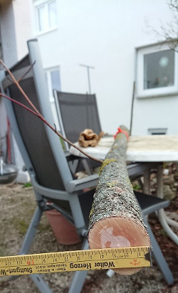 Ich bin zeitlich bedingt noch nicht dazu gekommen, die Säge anzusetzen, aber hier schon mal ein Foto des Kandidaten: Morgen früh hol ich ihn.