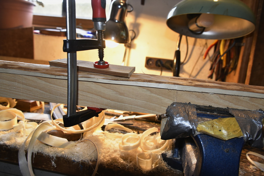 Ich hab mal versucht das Haselbacking etwas plan zu hobeln.