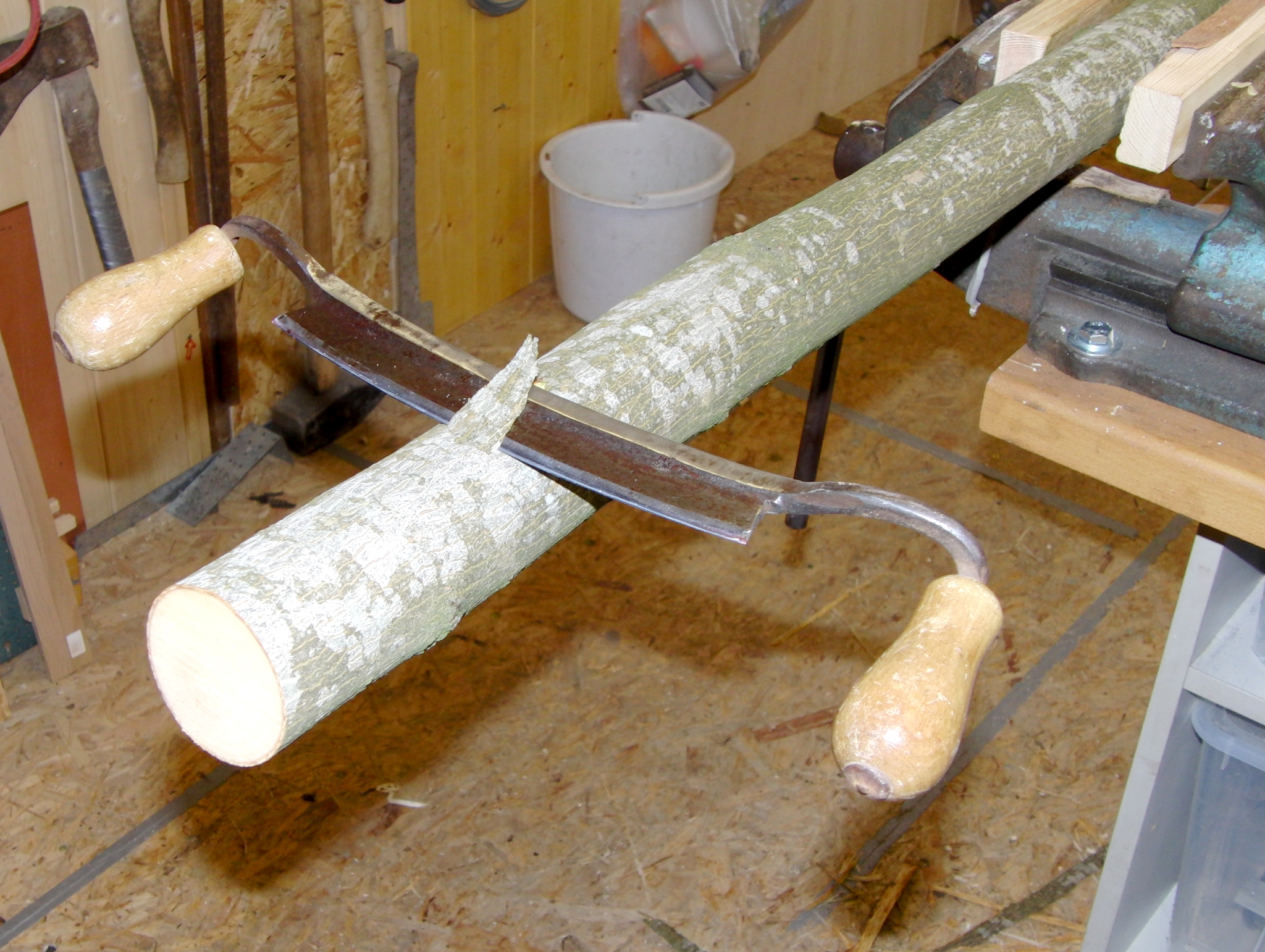 Mit einem Ziehmesser habe ich den Kandidaten am Bauch reduziert