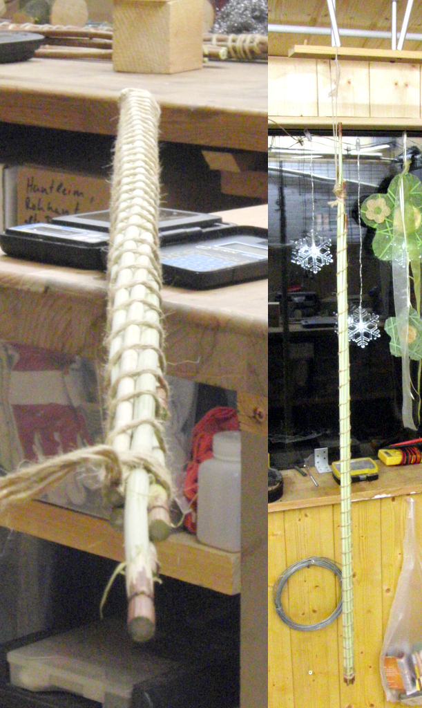 Heute habe ich die Schäfte wegen der verlorenen Feuchte neu eingebunden, die Bindung war ganz schön locker aber die Schäfte schienen gerade. Ich habe vor und nach dem neu Einbinden Fotos gemacht, die ich noch nachreiche.