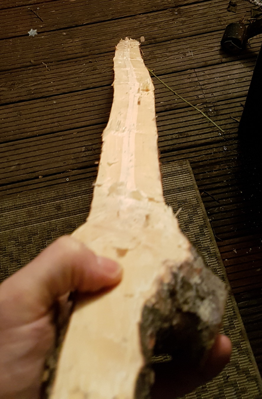 Den Knick habe ich schon abgesägt, da er an der Stelle auch seitlich aus dem Ruder läuft und der Knick nicht zu dem Bogen passt den ich im Kopf habe. Dazu später mehr