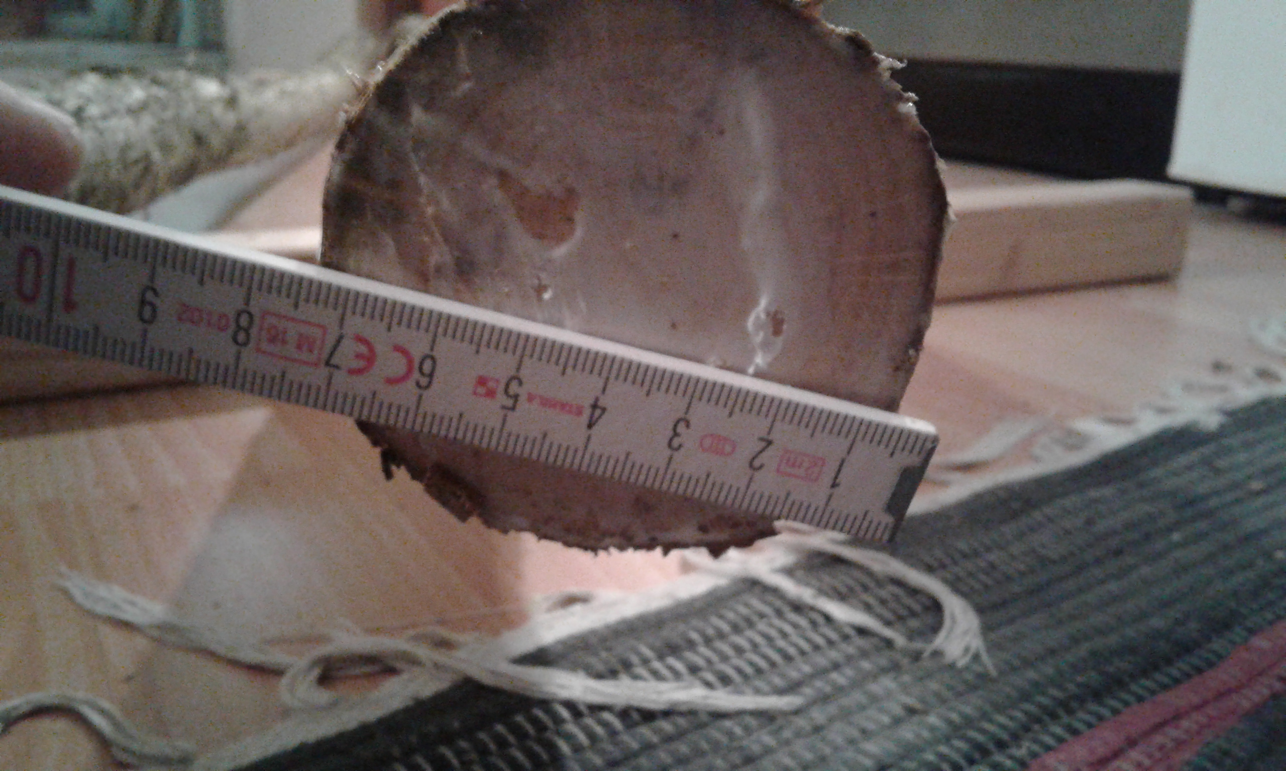 Hab mal noch Ringe gezählt, durch den Leim etwas verwaschen, sind 8 plus das erste Jahr in der Mitte (D ca 1cm) .Sind also 9 Jahre Wuchs nur für den Trieb, der Busch an Sich sieht schon ziemlich alt ,aber kräftig aus. Könnte also was recht Brauchbares ergeben. :D