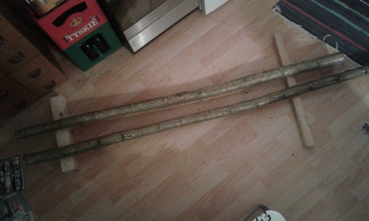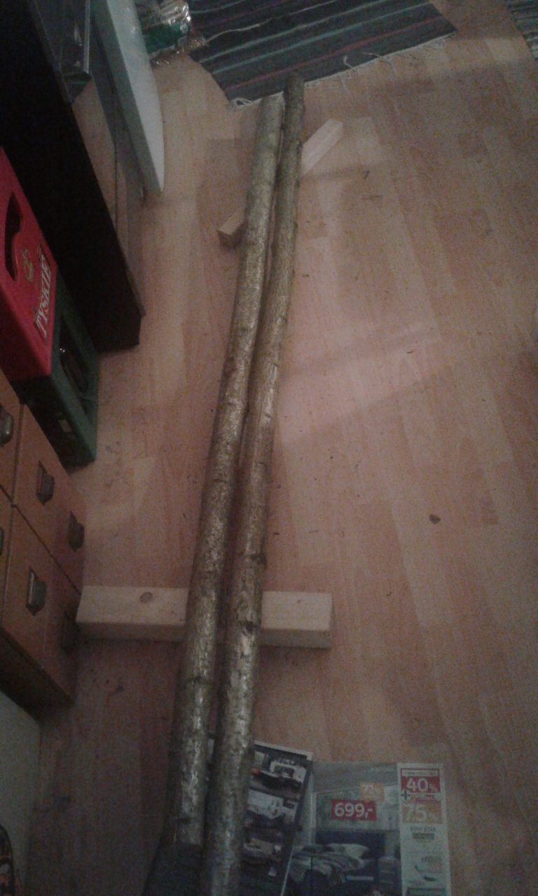 Hab das Behauen und Beschneiden mal auf Morgen verschoben, da die Gestern noch schnurgeraden Stämmchen etwas Wellen und Kurven gekriegt haben. Naja, der hydrostatische Druck fehlt, das Holz geht in seine natürliche Lage... ::) hoffentlich nicht zuviel Dreh, bis jetzt sinds nur Wellen in einer Ebene. Den Rest seh ich Morgen.
