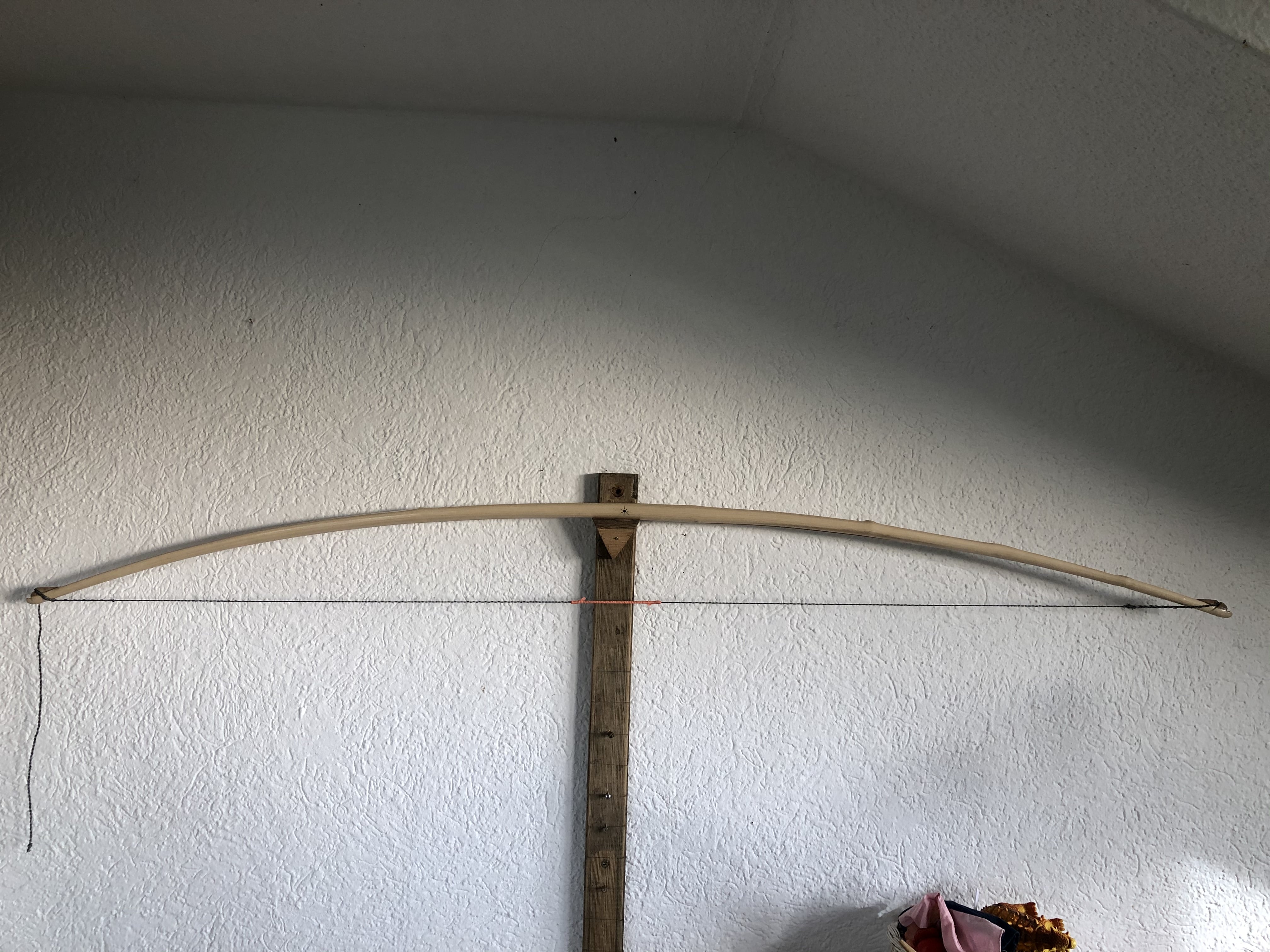 Es ist nicht so richtig mein allererster Bogen, allerdings der erste, den ich bis zum Finish gebracht habe. Meine ersten Versuche haben sich im Bereich von knapp 30 bis etwa 45# bewegt, ein Hasel und zwei Holler sind tatsächlich schussfähig. Dann gibt es noch drei Kinderbogen, ebenfalls Hasel und Holler, für meinen Filius.