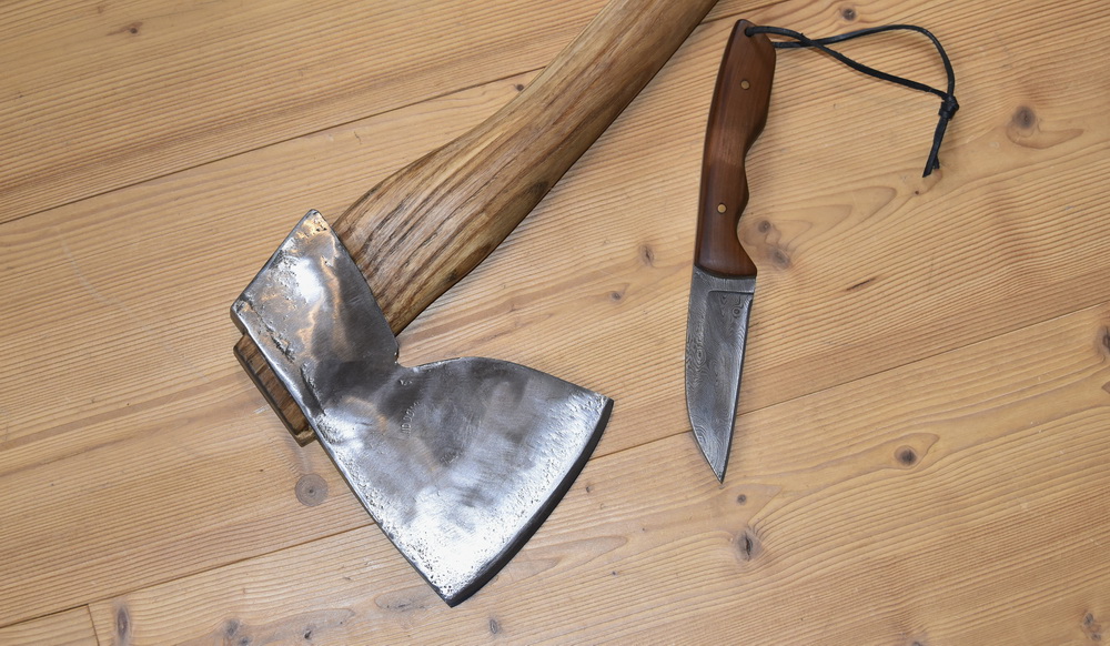 Das Messer hab ich ja schon vor langer Zeit einmal gezeigt, nun hab ich auch die Axt eingestielt und getestet.