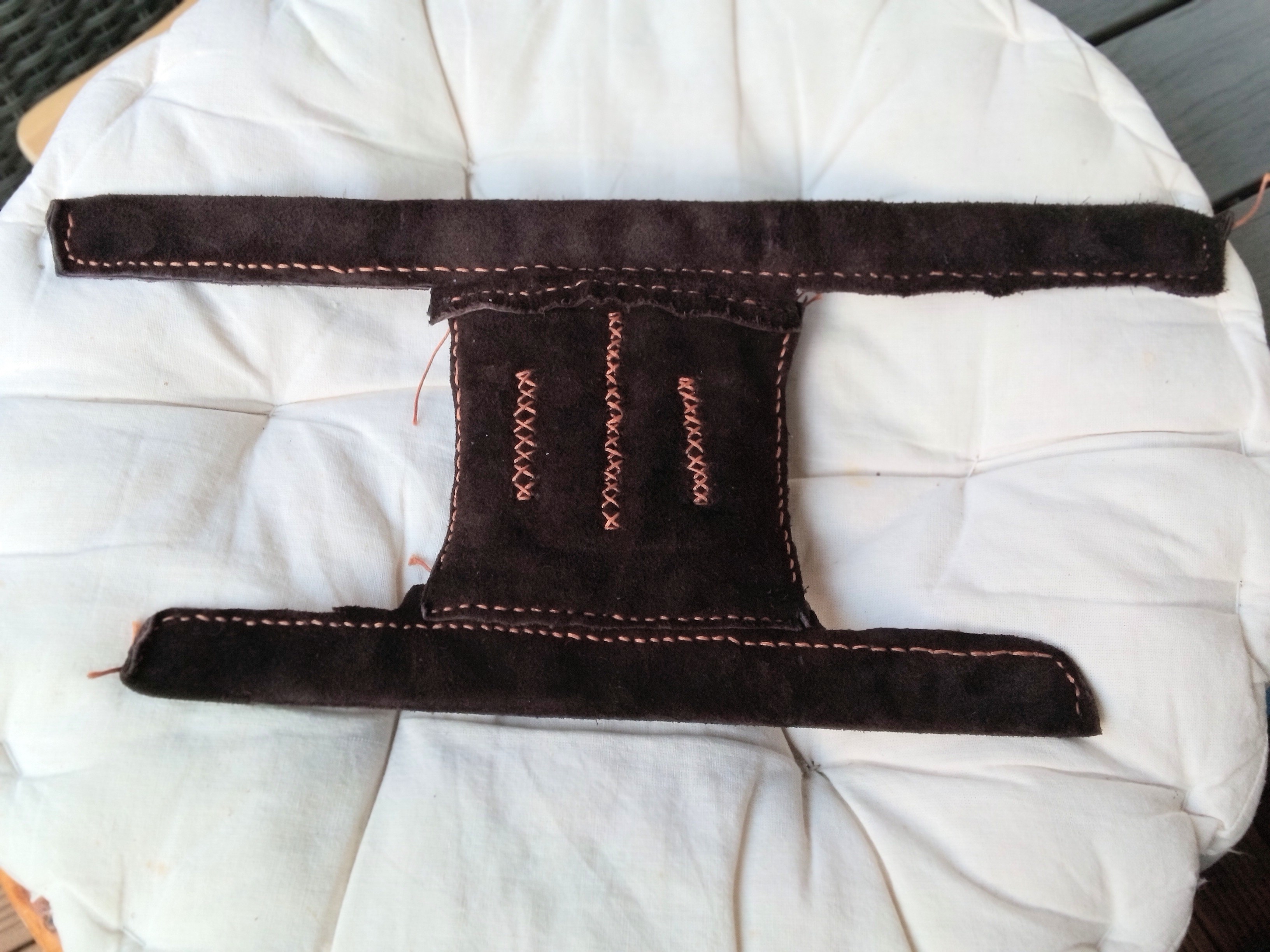 Beim Aufräumen fand ich ein sogenanntes Schnapparmband, das man mittels eingebauter Feder zB beim Radfahren als Reflektor um den Arm legen kann. Ich hatte die Idee, das Band oder die Feder mit einem Armschutz zu kreuzen. Das funktioniert tatsächlich ganz gut, kann aber noch verbessert werden. Verbaut habe ich in dem Armschutz 3 Federn.