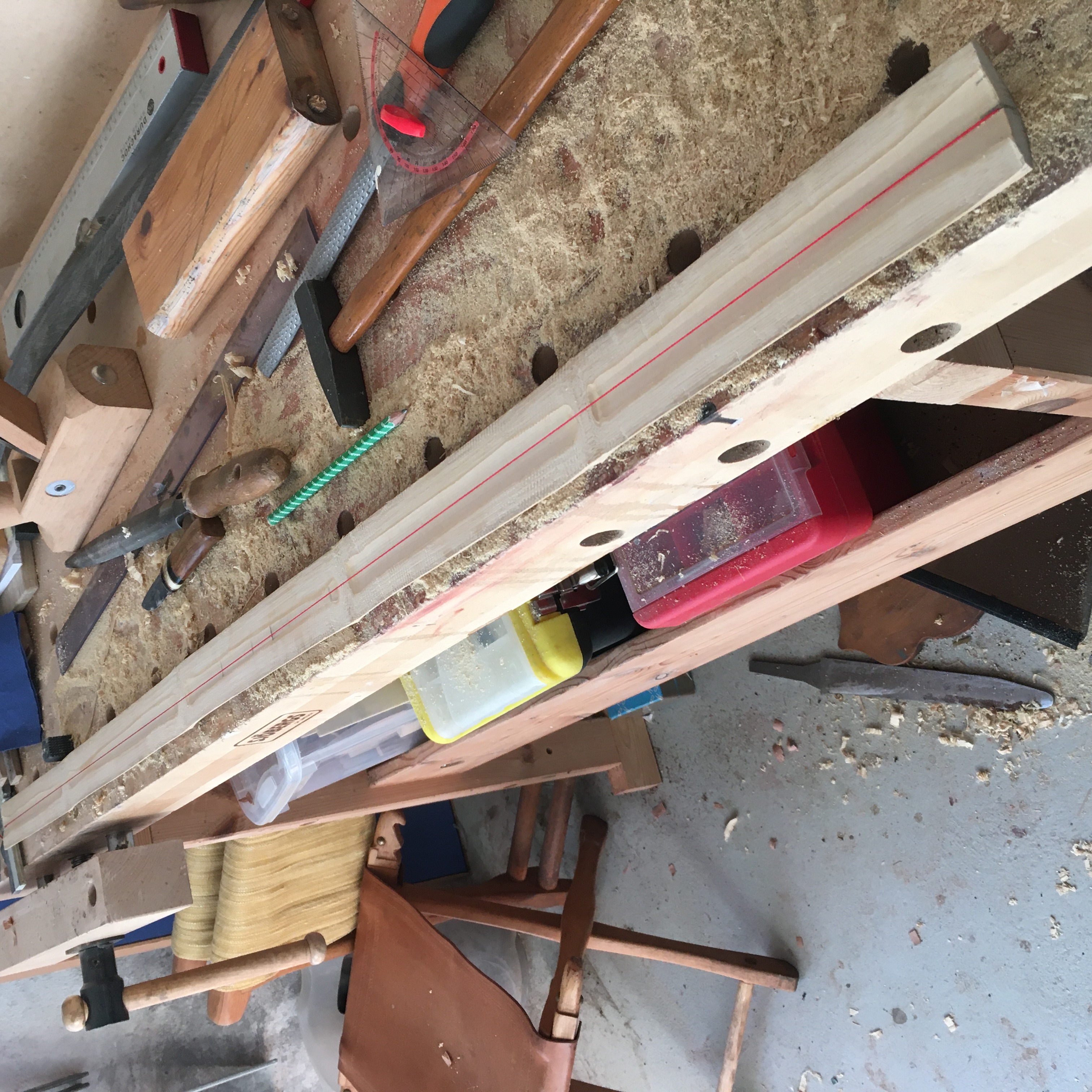 Bis her läuft alles wie beim Holzbogenbau, ein leichter 'propeller' in den Wurfarmen bin ich sanft am beseitigen mit den schabmesser.