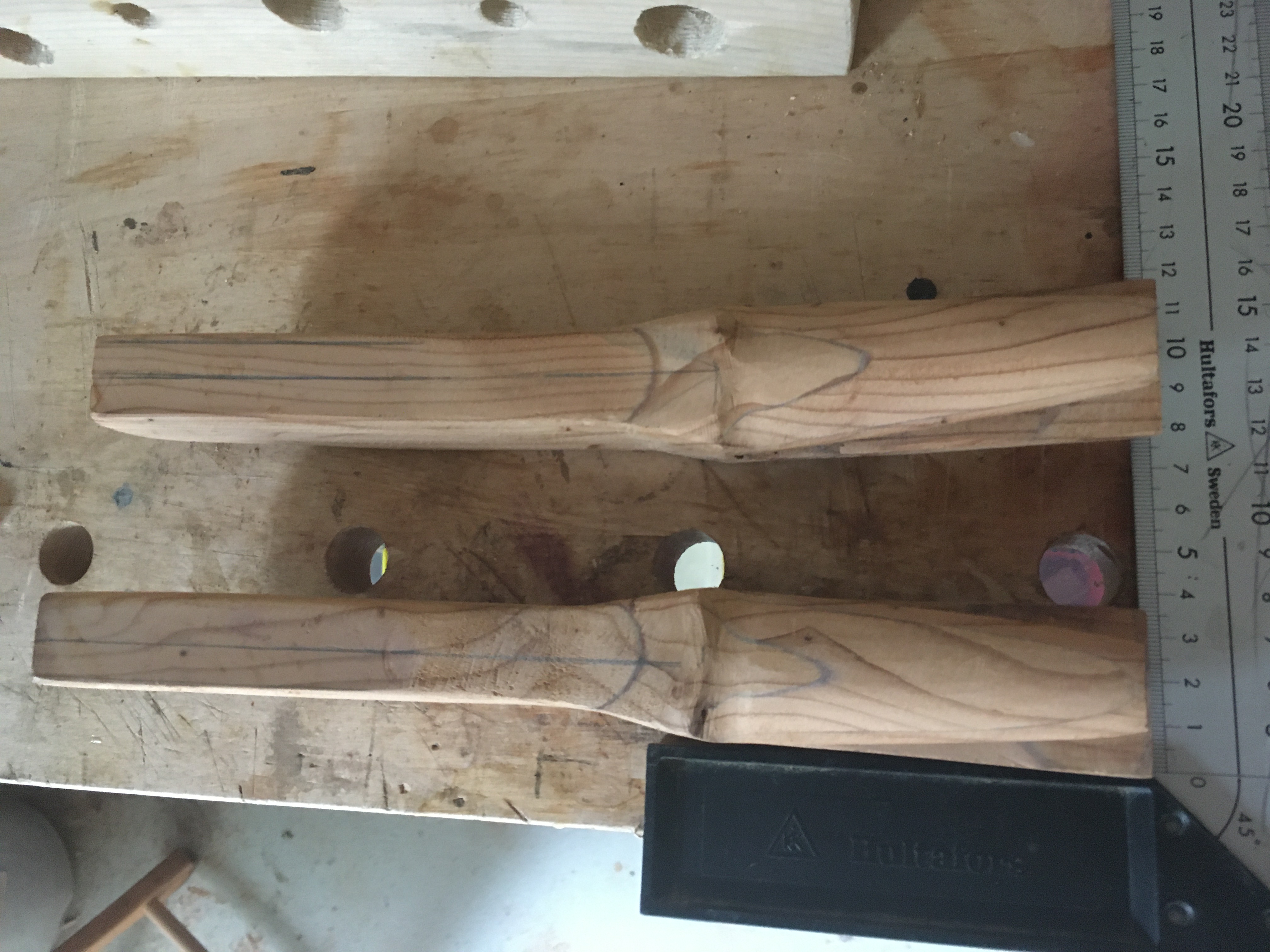Oder hat das ein Grund...? Die Siyahs sind auch noch ziemlich fett. Du solltest die am Übergang in der Breite auf max 2,5cm Reduzieren und in der Dicke auf 2cm. Es sei denn du willst ein 160# Bogen bauen