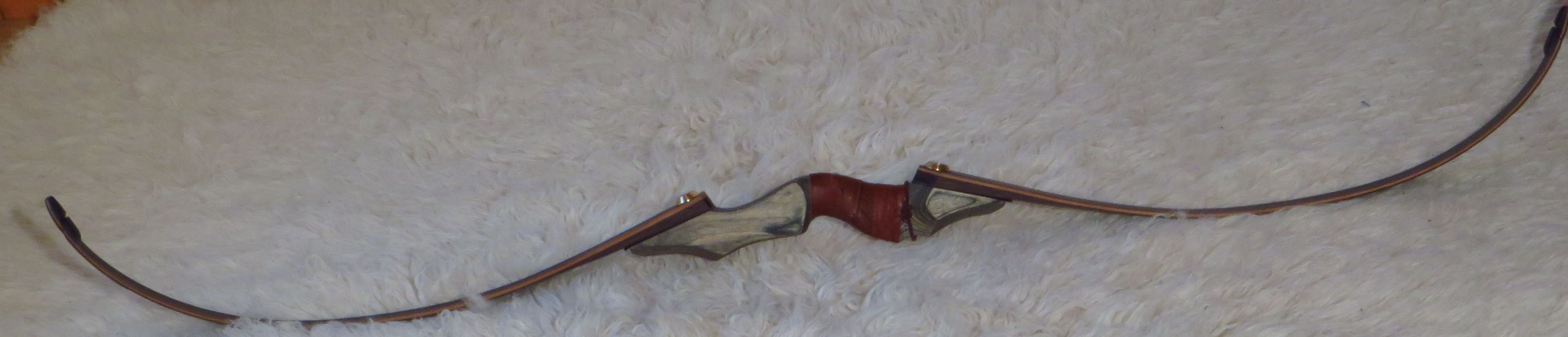 hier mal einen Bogen, den ich umgerüstet habe für einen Schützen. Er hatte auf seinem "Hunter" Griff ein paar standard Hybrid Wurfarme. Da er jedoch einen 32" Auszug hat, gehen die nach hinten raus sehr hart. Also habe ich ihm etwas längere gebaut mit Zierfurnier seiner Wahl - Zirikote Splint/Kern auf den Rücken und Zirikote Kern auf dem Bauch. Kamen genau passend mit 41lbs@32" raus