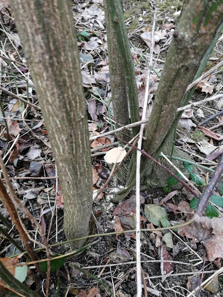 Und während ich so zu meinem nächsten Ziel, einem Pfaffenhütchen mit ziemlich geradem Wuchs und oben einem Knick, schlendere geht mir dieser Gedanke eines primitiven "Maruki-Yumi" nicht mehr aus dem Kopf. Dann stehe ich vor meiner vermeintlichen Kandidtatin Nr. 2 und was sehe ich dahinter?