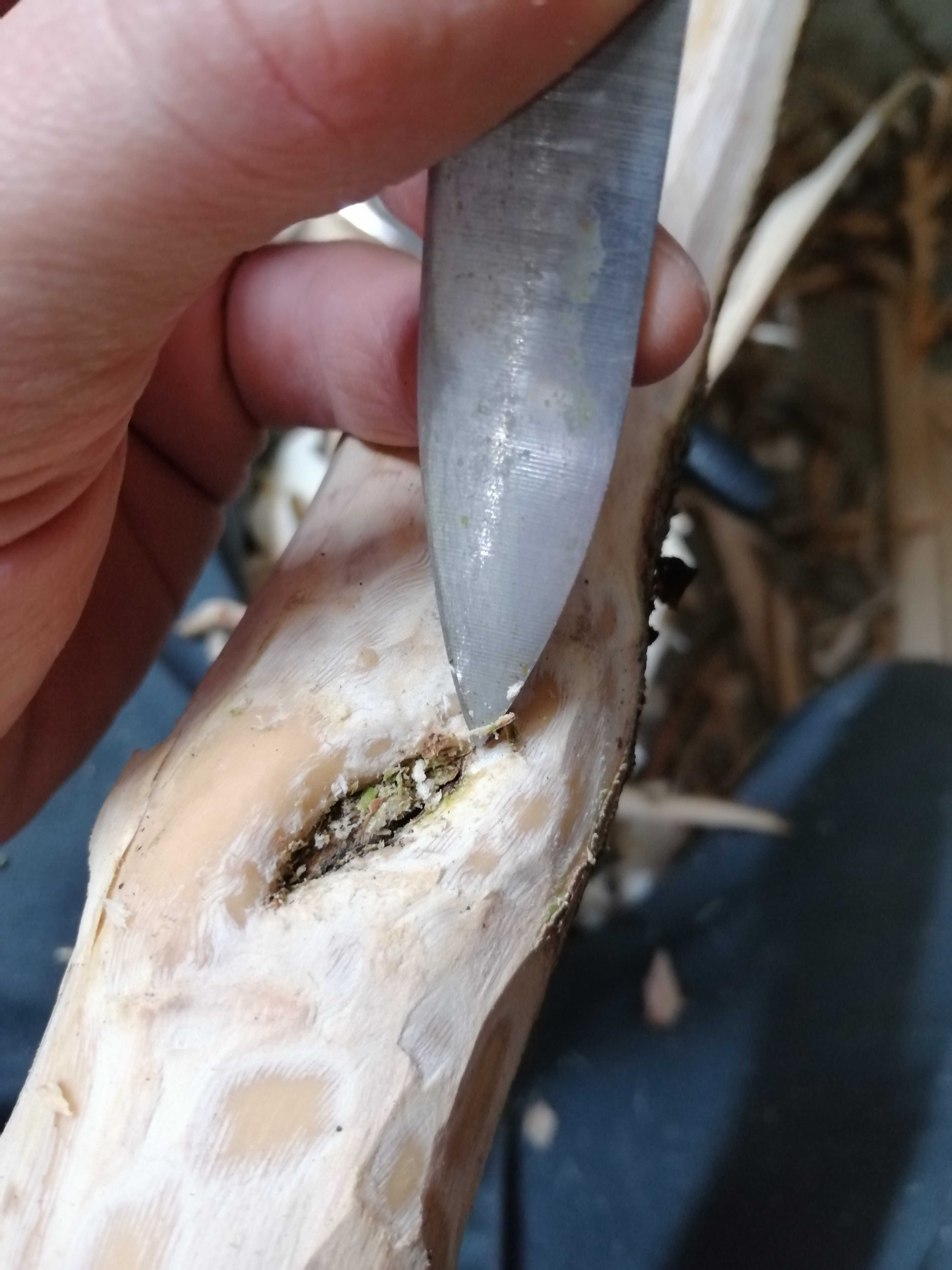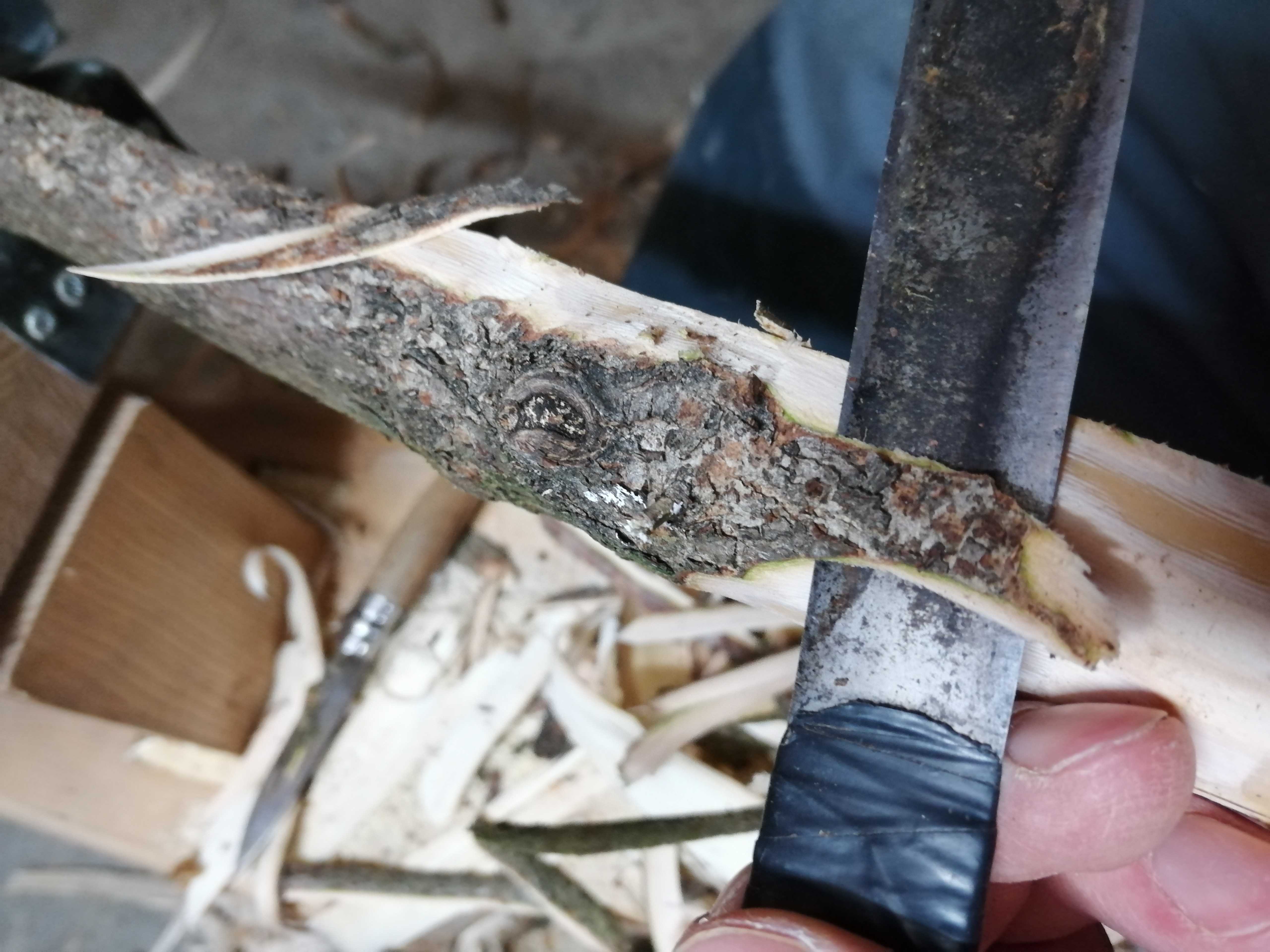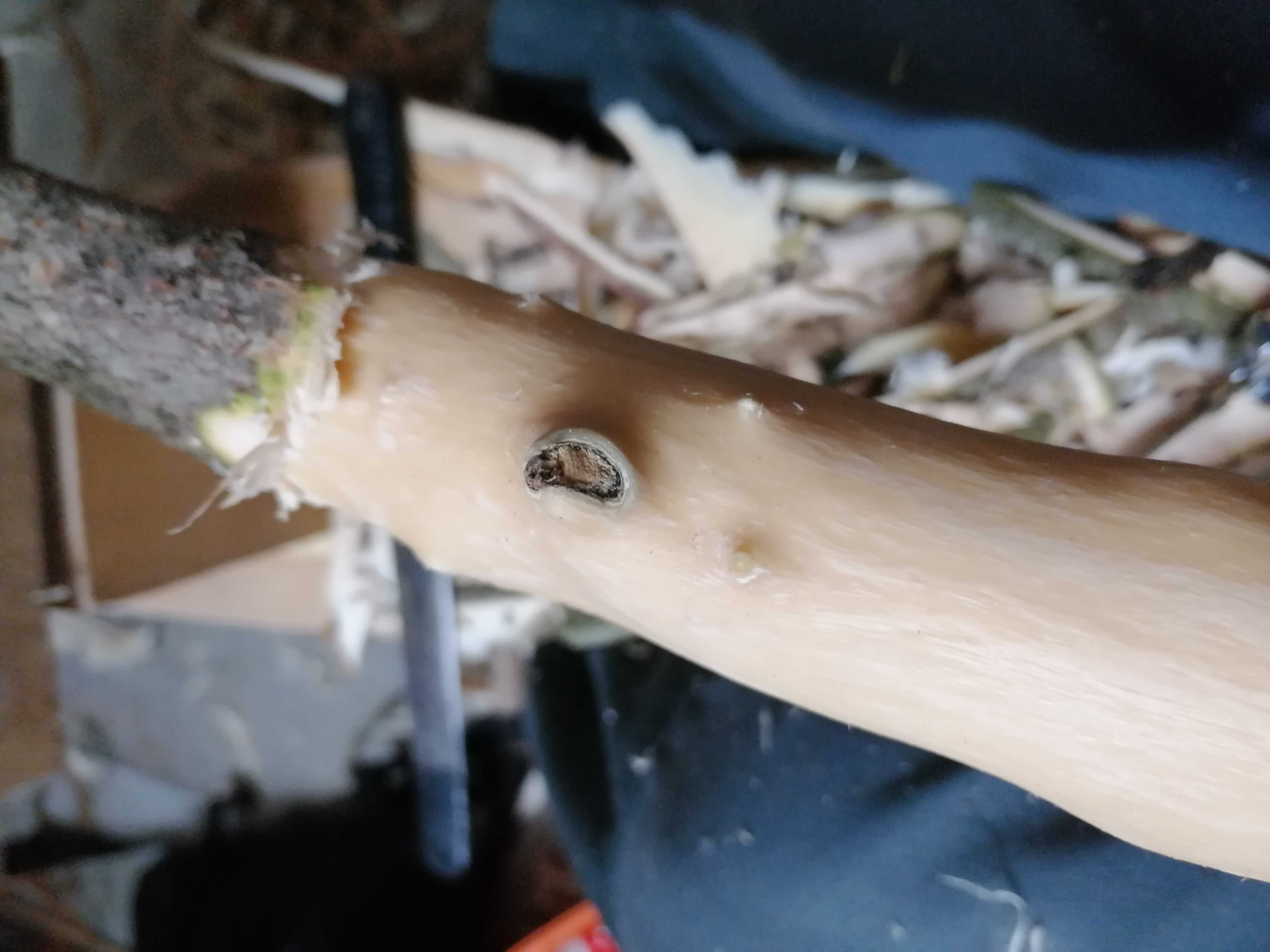 Im Griffbereich kam einiges an überwachsenem Totholz von 2 Verletzungen zum Vorschein. Außerdem noch so einige andere Knubbel, Äste und Einschlüsse.