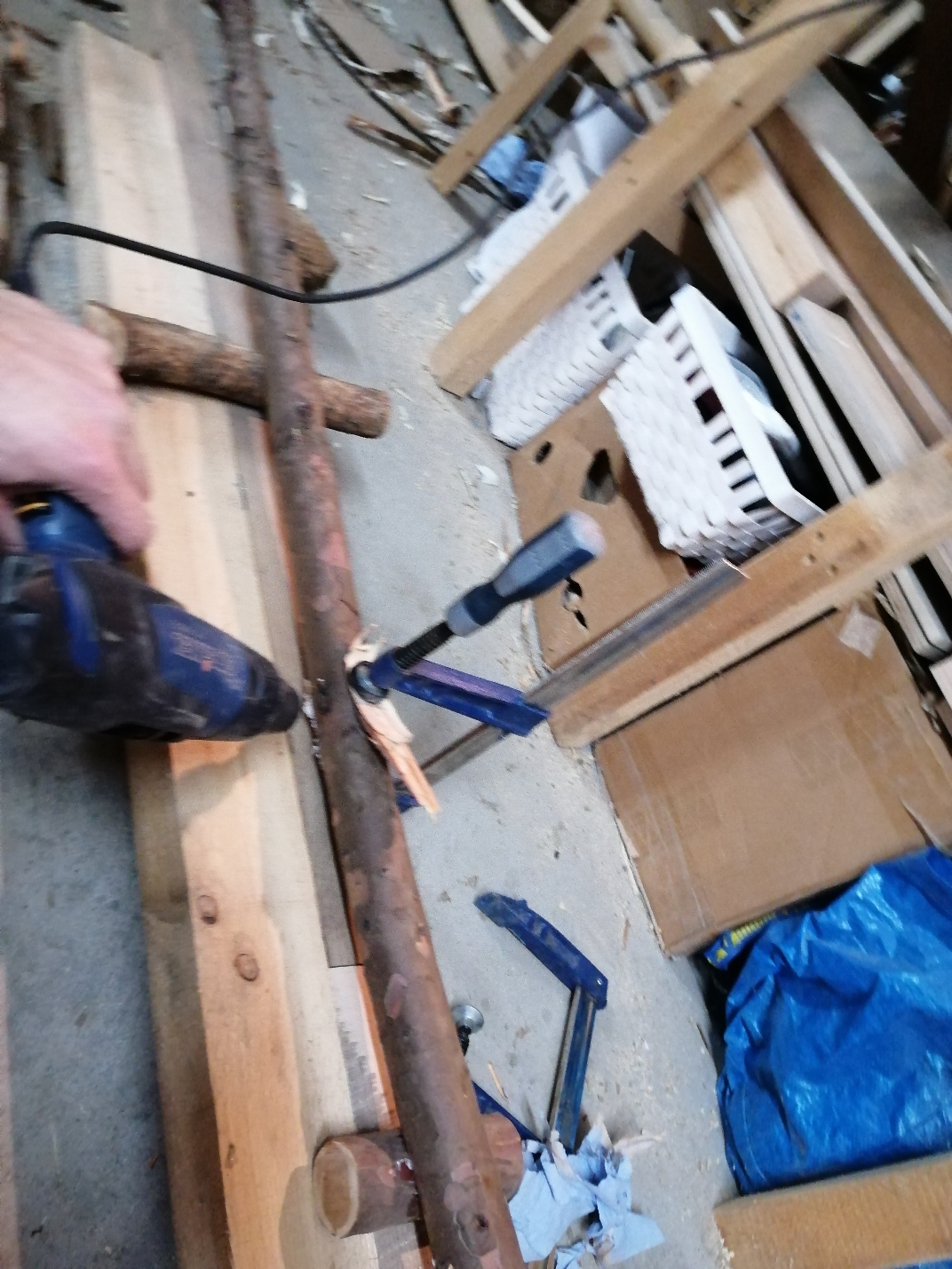 @MrCanister: Ja, das Stück ist ein echter Glücksgriff. Ich hab zwar schon einige auf Lager, aber meistens haben sie dann doch irgendwo an einer blöden Stelle einen Knick. Und die Länge astfrei hatte ich bis jetzt auch noch nicht. Hab sie jetzt mal ganz entrinden und wieder eingespannt.