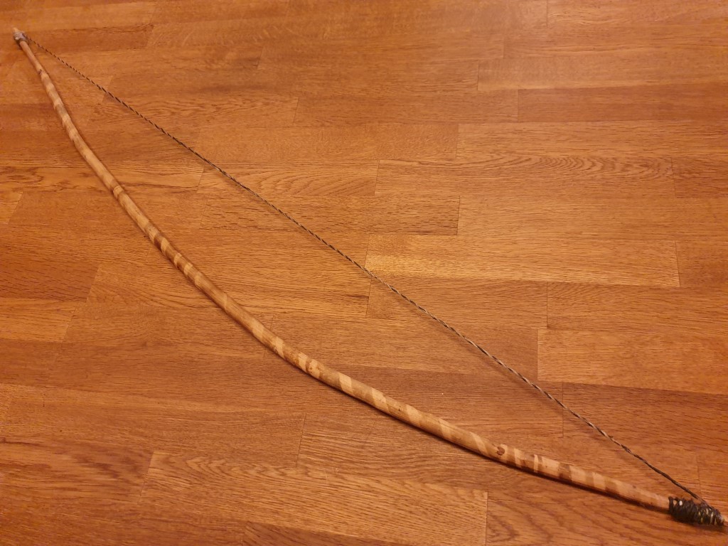 Die Sehne ist entsprechend locker, und ihn ernsthaft auszuziehen traue ich mich nicht. Keine Ahnung, was für Holz das ist.