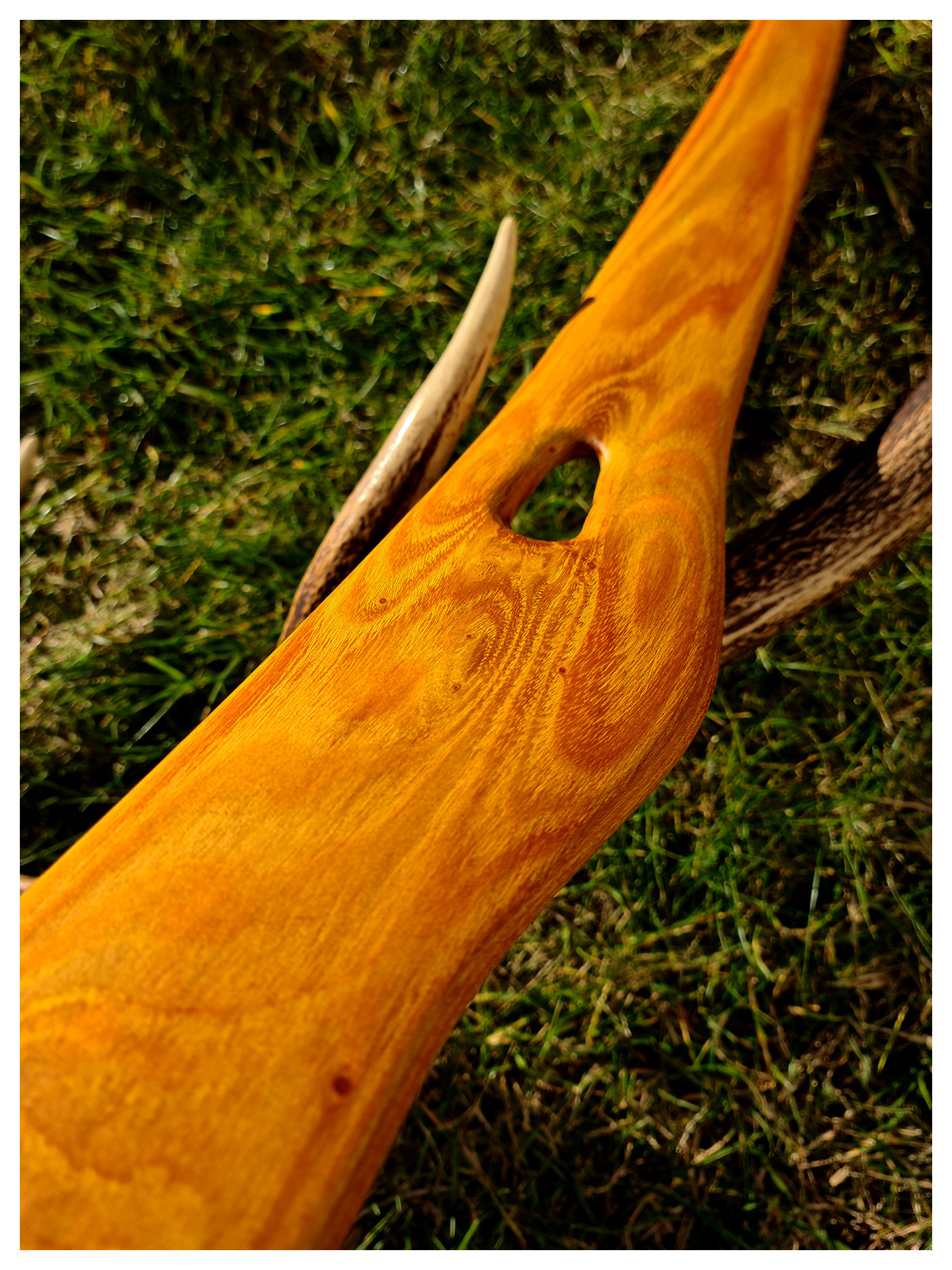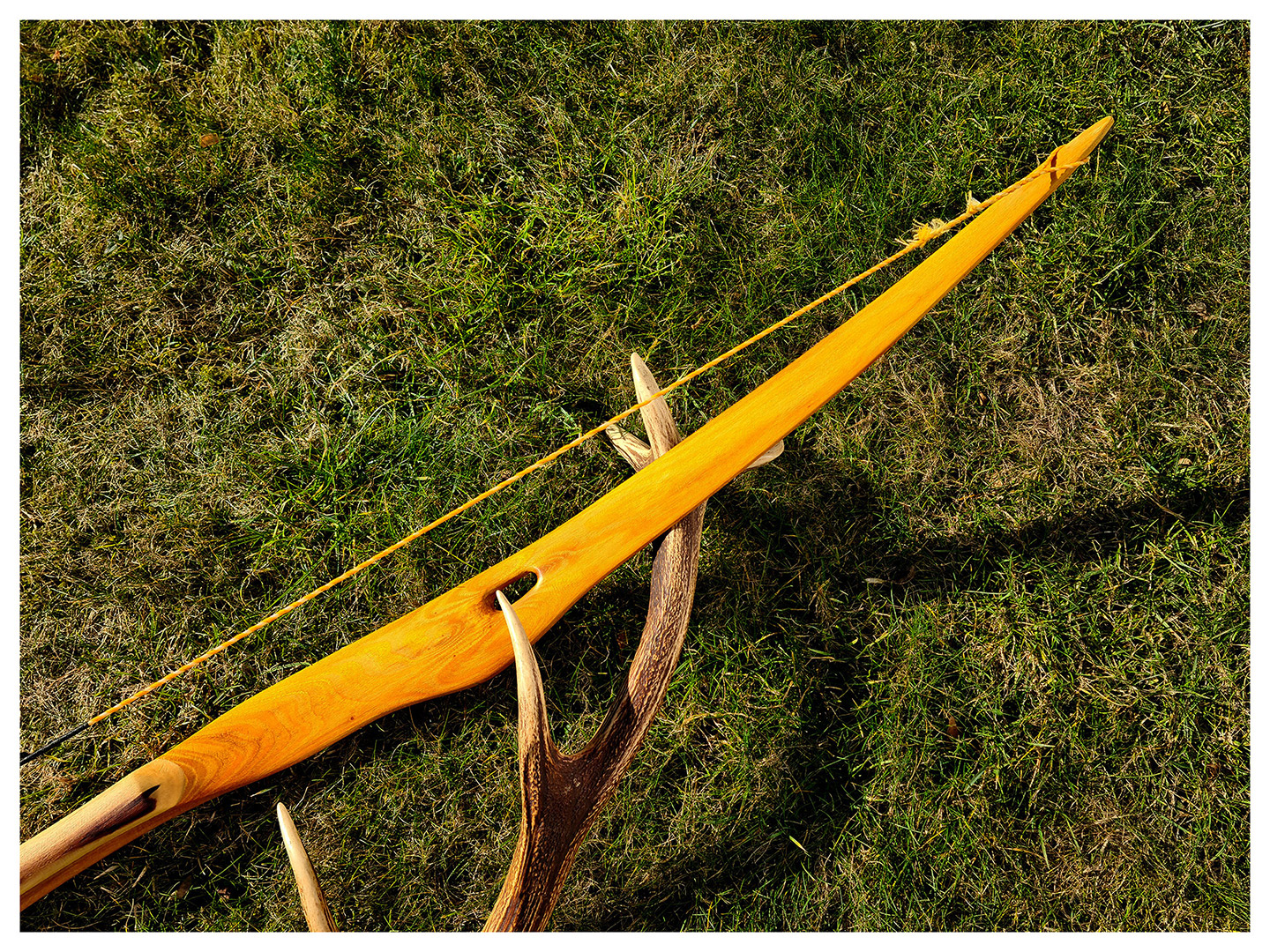 Material: Bogen: Osage Orange/ Griffholz: unbekannt (riecht beim bearbeiten nach Mandel ;)