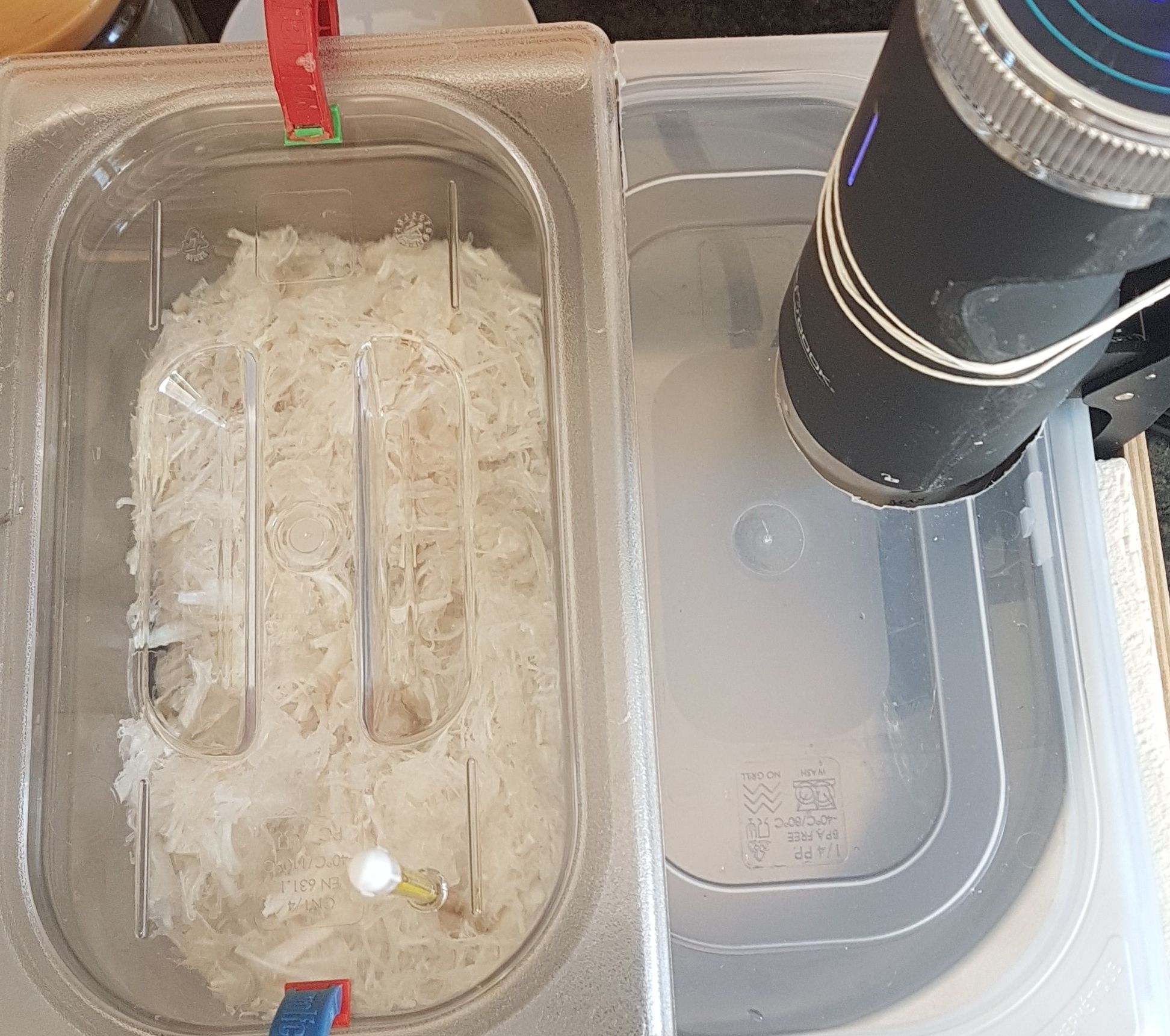 Die zugegebene Wassermenge sollte möglichst gering gehalten werden, um später unnötig lange Trocknungszeiten zu vermeiden. Hierzu kann man beispielsweise die ersten 1-2 Std. nur soviel Wasser zugeben, dass nur ca. 3/4 der Sehnen mit Wasser bedeckt sind und danach entscheiden, ob noch mehr Wasser nötig ist.