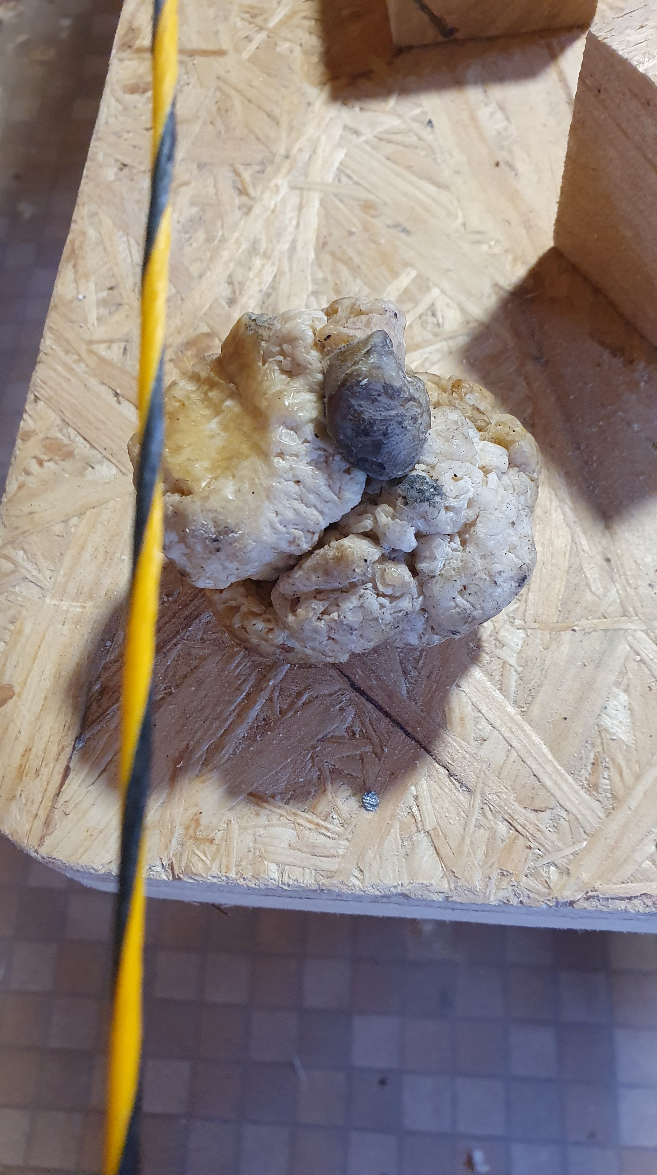 Hatte noch n bisschen weiches Gewebe zu entfernen. Das Loch wurde anschließend mit Epoxy und Schleifstaub verfüllt.