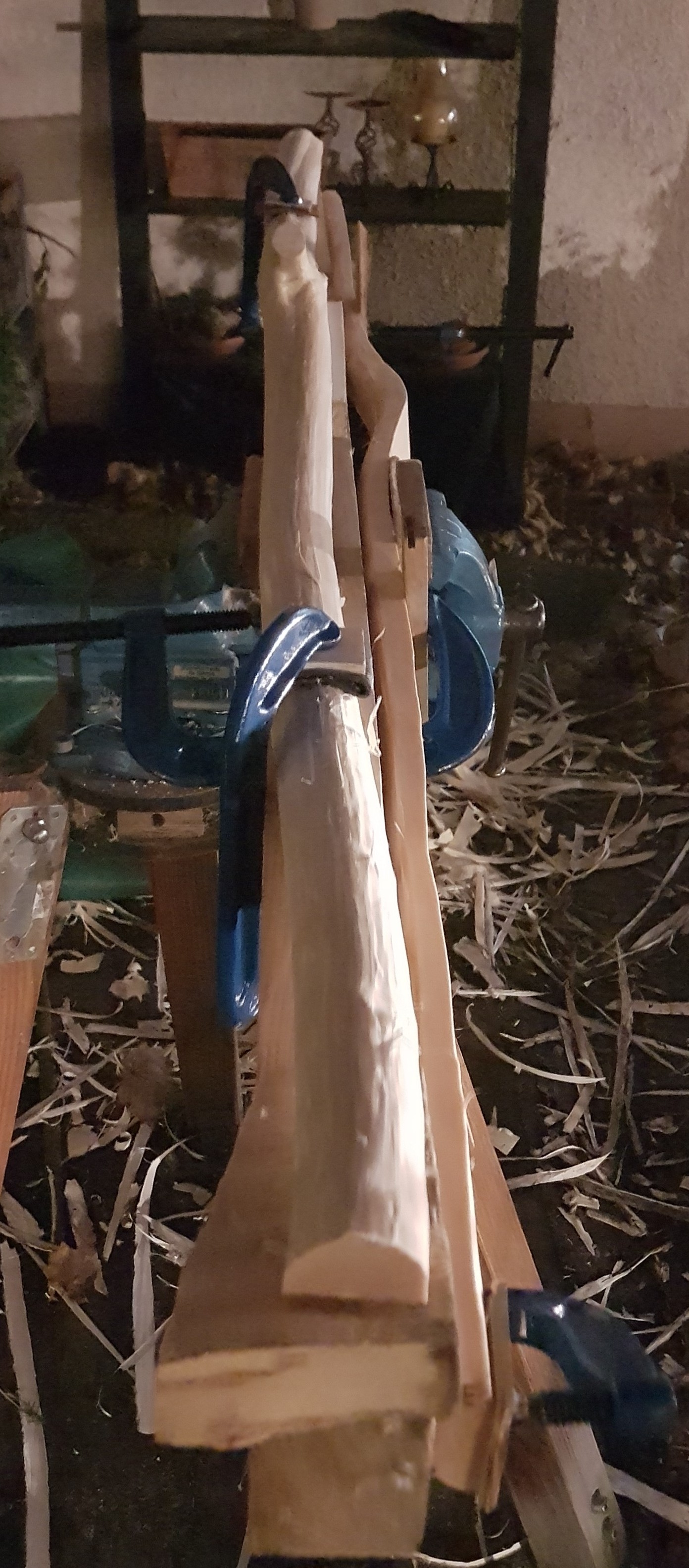 - hier gekürzt auf ca. 215 cm und die Enden mit Holzleim eingeschmiert