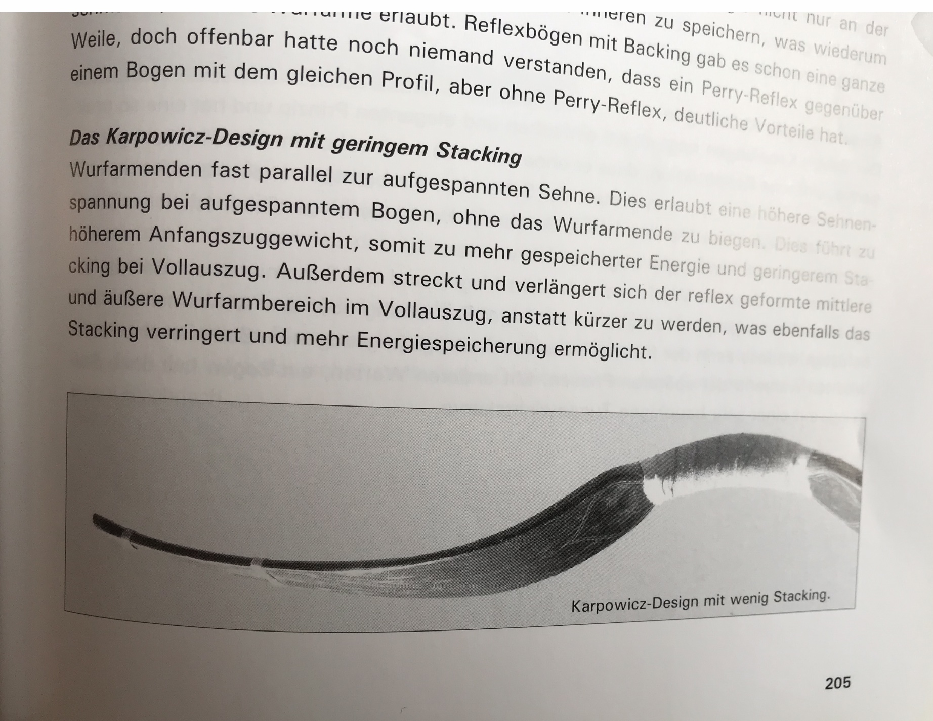Momentan plane ich den Bogen wie auf meiner Skizze zu sehen zu platzieren. Da sollten die Biegungen und Proportionen halbwegs stimmen. Der Bogen hätte dann einen sehr schrägen Griffbereich mit "Centercut". Mal schaun wie die Sehnenlage nach dem trocknen ist. Wenns nicht passt bieg ich ihn im steifen Griffbereich zurecht. Von der Seite betrachtet wirds dann nicht weniger heftig als von Vorne. Hat irgendwie was von nem Deflex-Reflex Langbogen