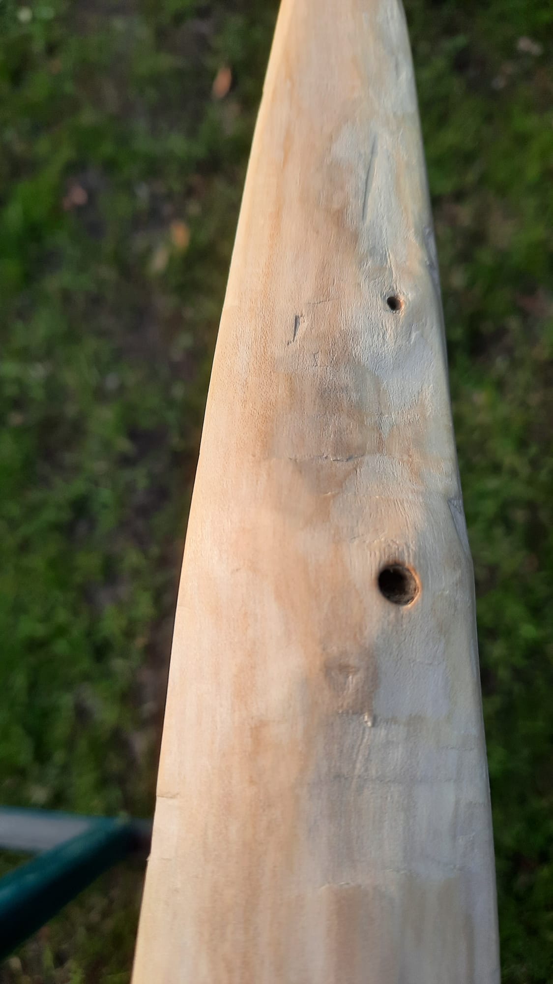 Mach bitte gute Photos vom Holz (Stirnseite, Seitenansicht im Griff, Bogenbauch).