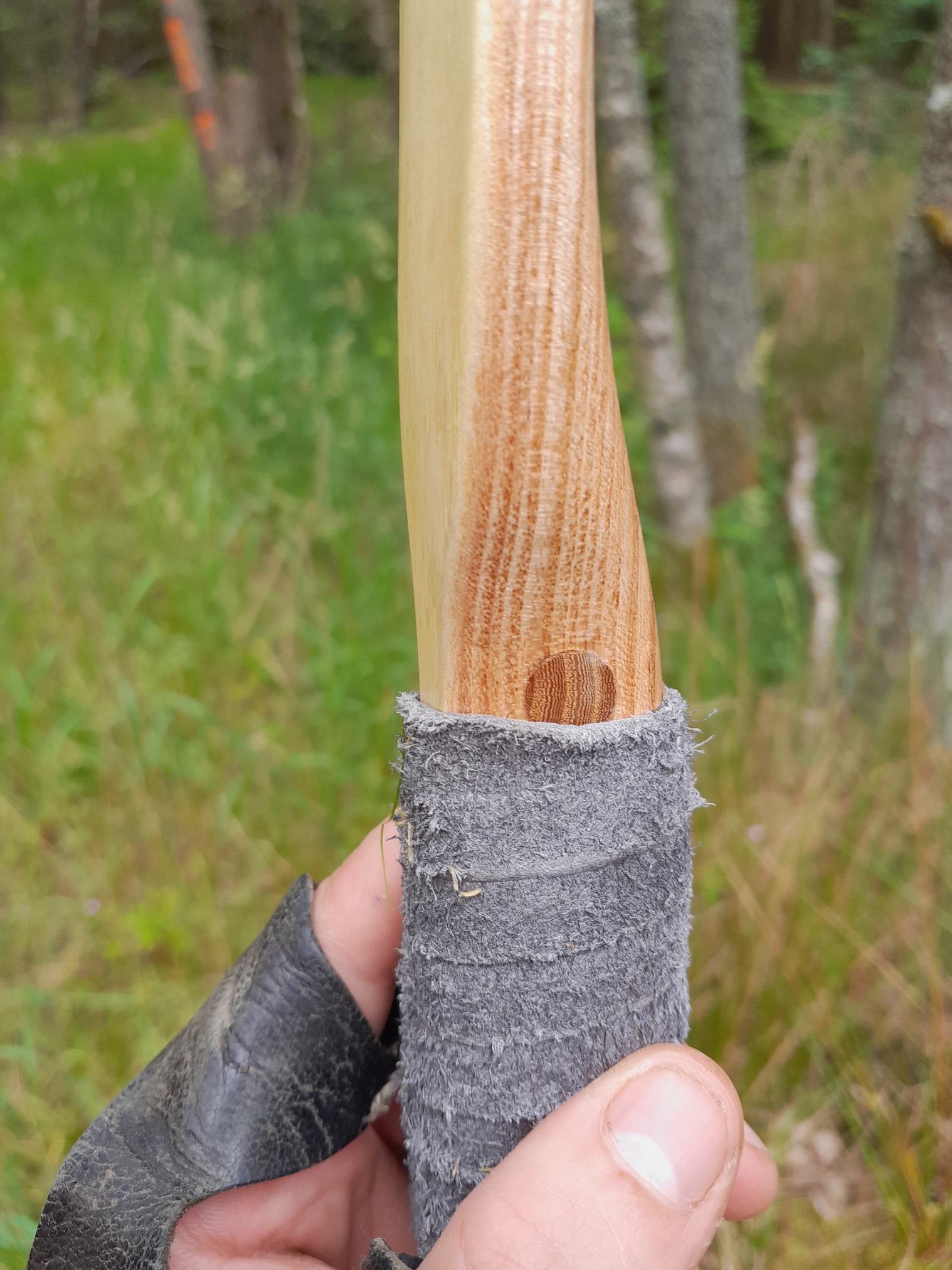 Griff mit grauem Leder gewickelt und Arrowpass aus Bergulmenkernholz.