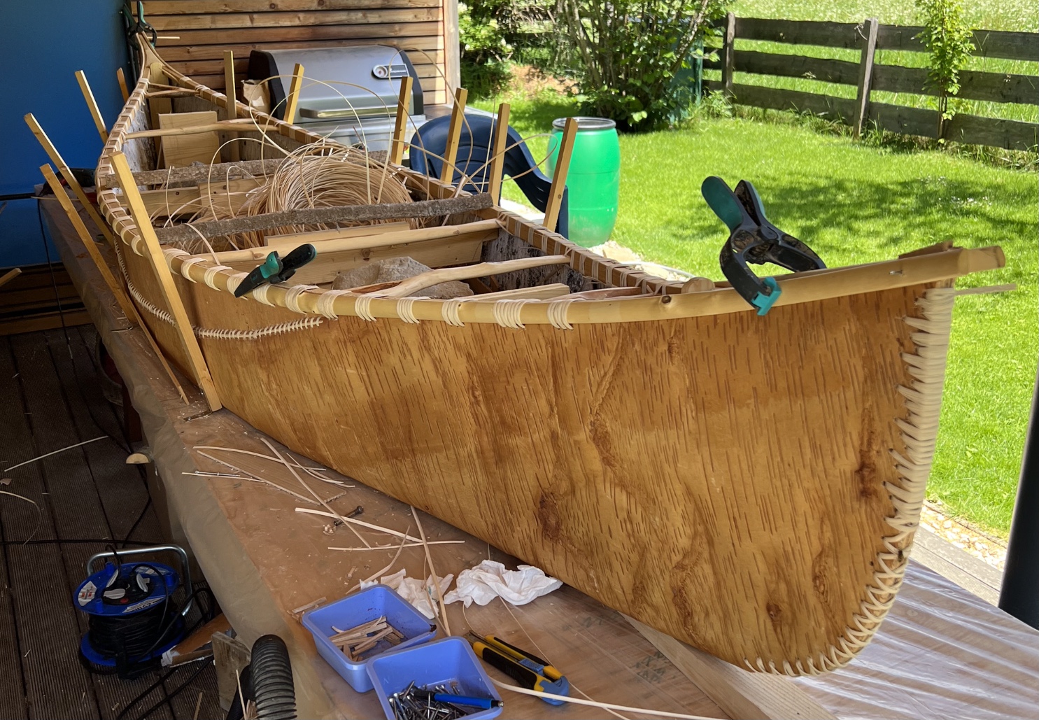 Ich möchte heute mein Sommerprojekt präsentieren, ein Birkenrindenkanu im Stile der Ostküstenindianer (Passamaquamoddy, Malecite, Penobscot, Algonkin)